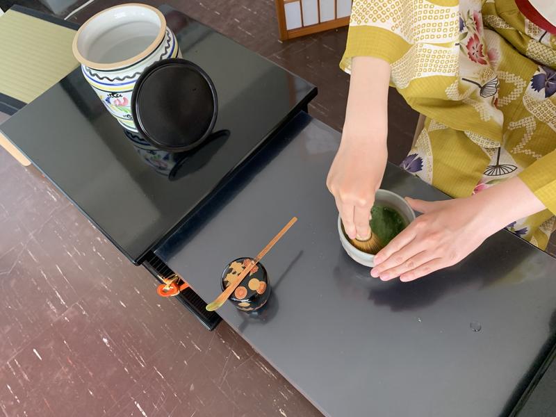 茶道は裏千家、華道は池坊の原田先生と藤尾先生に来ていただいて、毎回浪花堂さんの創作和菓子を食べながら楽しく活動しています。文化祭では、華の展示とお茶席を行い、お茶席では、「お抹茶体験」として、作法の伝授と抹茶を自分で建ててもらう参加型とし、参加者に楽しんでもらいました。