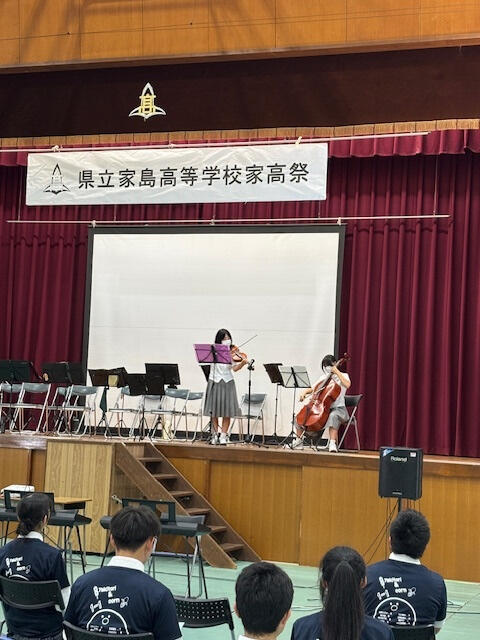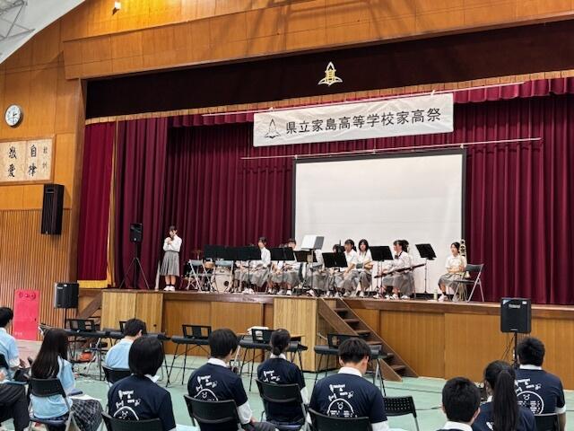 10月5日(土)、家島高校の文化祭に吹奏楽部と弦楽部が参加しました。この取組は、発展的統合校である、網干、姫路南、家島の3校が交流して各校の行事に参加する事業として行われています。