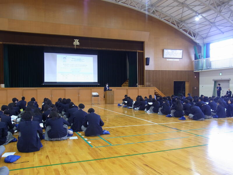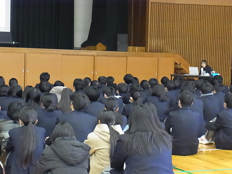12月8日(月) 期末考査終了後、学校薬剤師の三枝さんを講師に迎えて、3年生を対象に薬物防止の講演会が行われました。今回は、学校薬剤師の方から、これから進学・就職をしていく3年生にとってより身近な問題にフォーカスを当てた講演会でした。薬に関しては、病院で受け取る処方箋について、飲み方や危険性について、これから接する機会が増えるタバコやアルコールについてのことなど、大人になると身近になっていく事とそこに起こりうる危険や弊害について学びました。