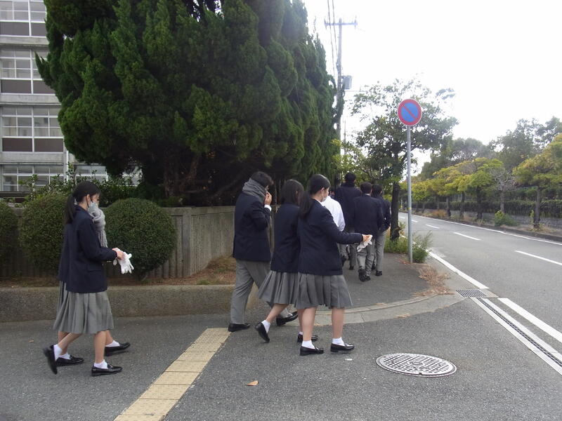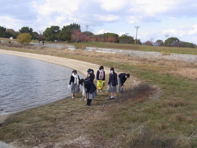 12月6日(金)、1年生が網干高校生恒例のクリーン作戦を実施しました。風は強いけれどいい天気で、皆で広い公園を手分けしてプラスチックゴミやジュース缶などを集めました。持って帰ったゴミは分別をして、今年のクリーン作戦は終了しました。
