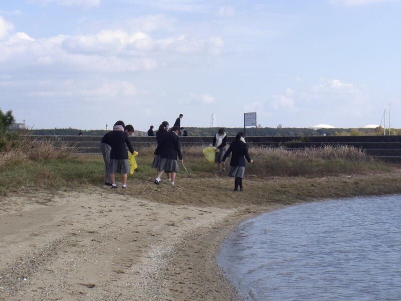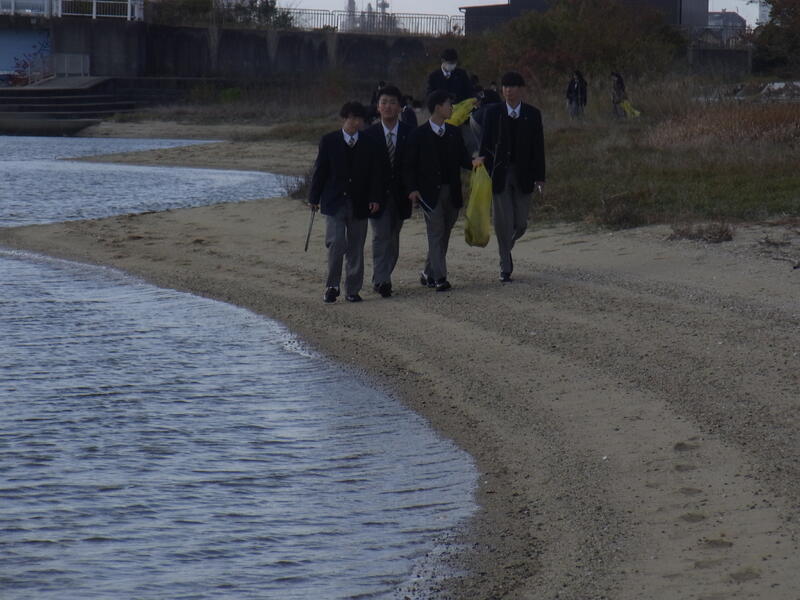 近年、プラスチックゴミが海に流れ、マイクロプラスチックになり、海の生態系に影響を与えることが問題になっています。少しでもプラスチックゴミを減らしていけるよう、私たちも気を付けていきたいですね。1年生の皆さん、寒い中、お疲れ様でした。