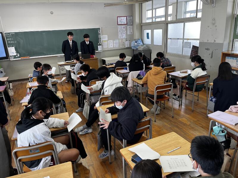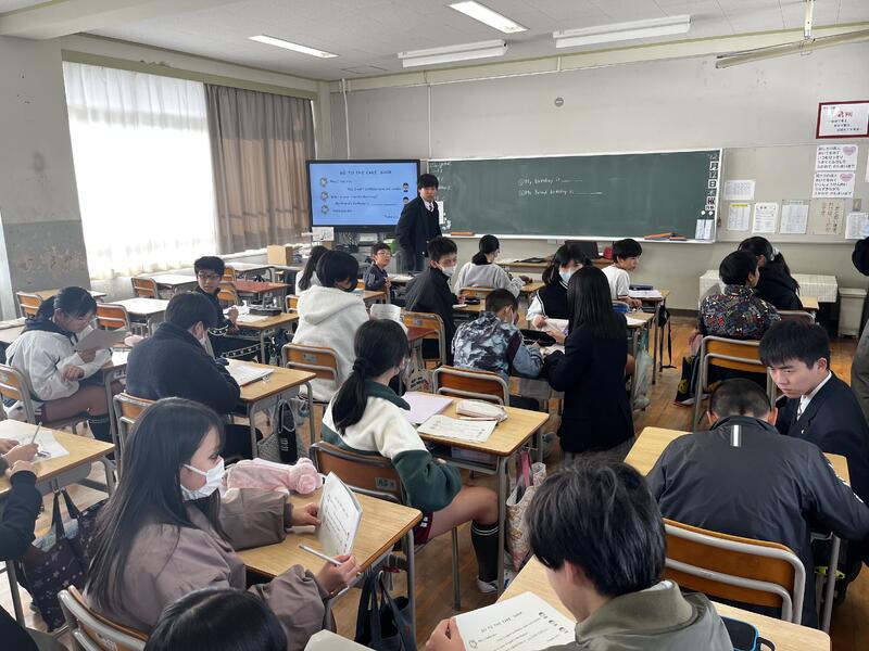 7限は、2年生の探究の授業に特別参加をしました。片言の英語と日本語が飛びかい、楽しそうに交流をしている姿が印象的でした。