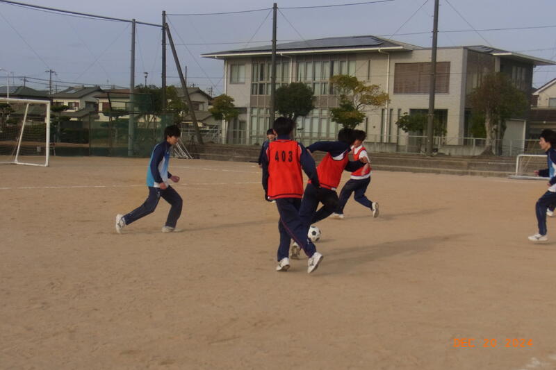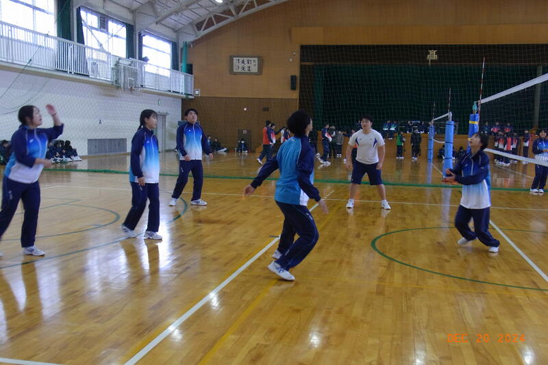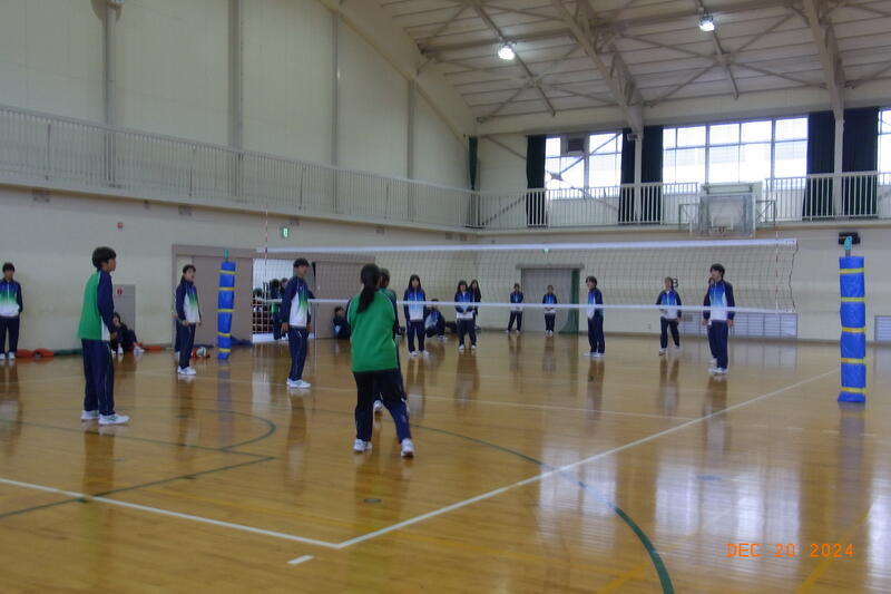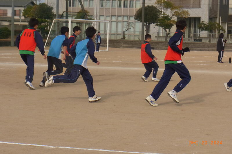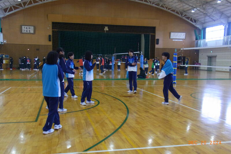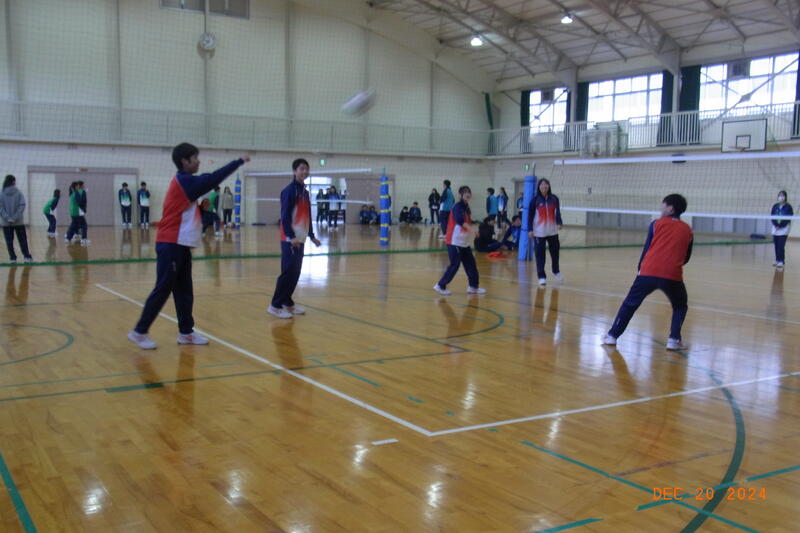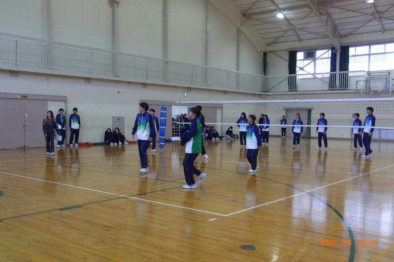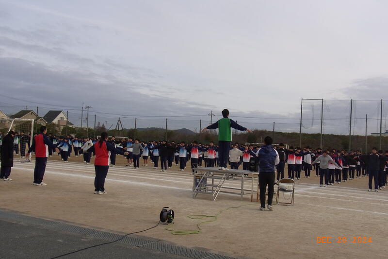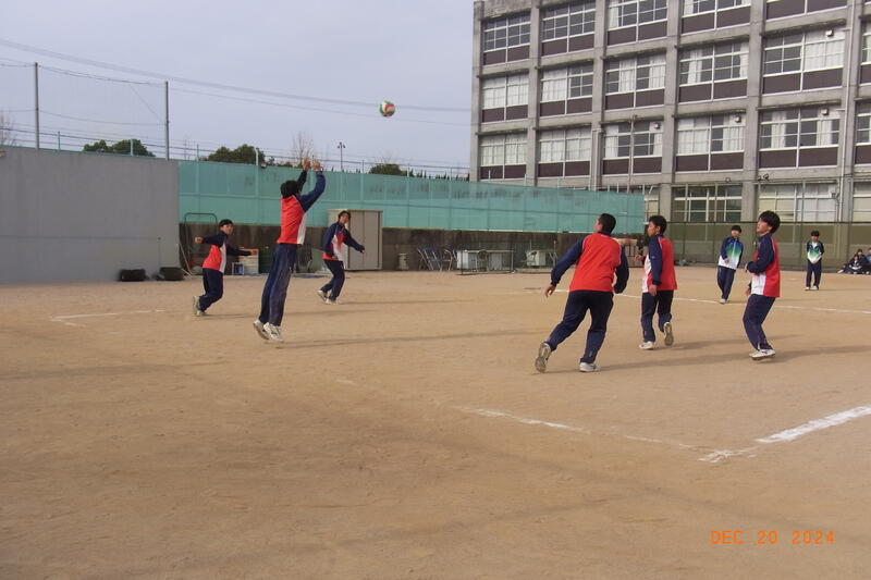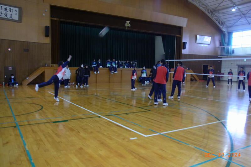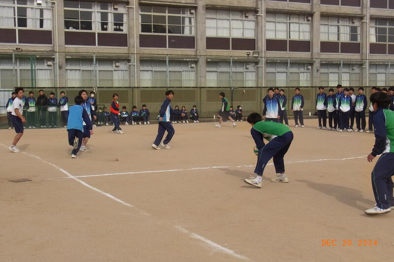 12月20日(金) 球技大会が開催されました。3学年揃っての球技大会は、これが最後となります。全員そろって行われた開会式では、校長から「ケガや事故に気を付けて、思い切り楽しんでクラスの親睦を深めてください。」と開会のあいさつがあり、ラジオ体操のあと、生徒会の代表による選手宣誓で球技大会が始まりました。