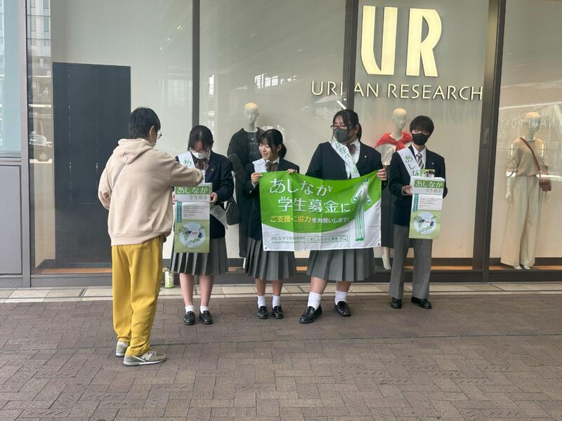 | 駅を利用する人に交通安全を呼びかけました。 | |