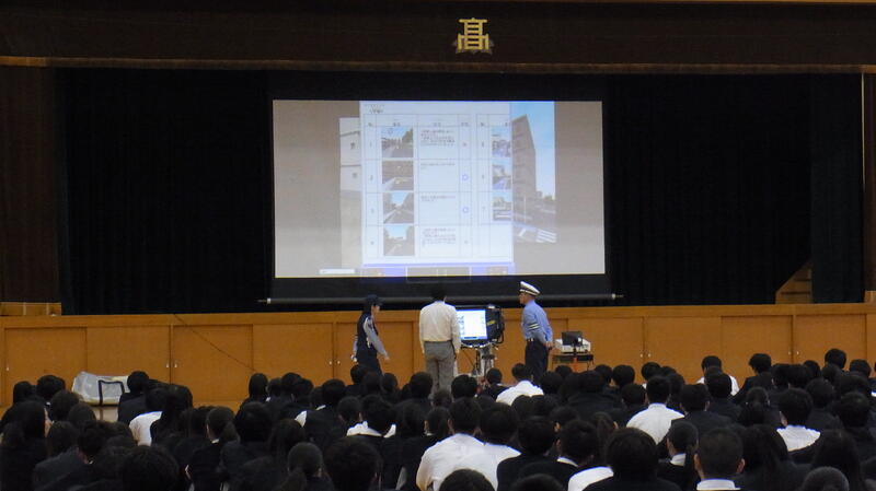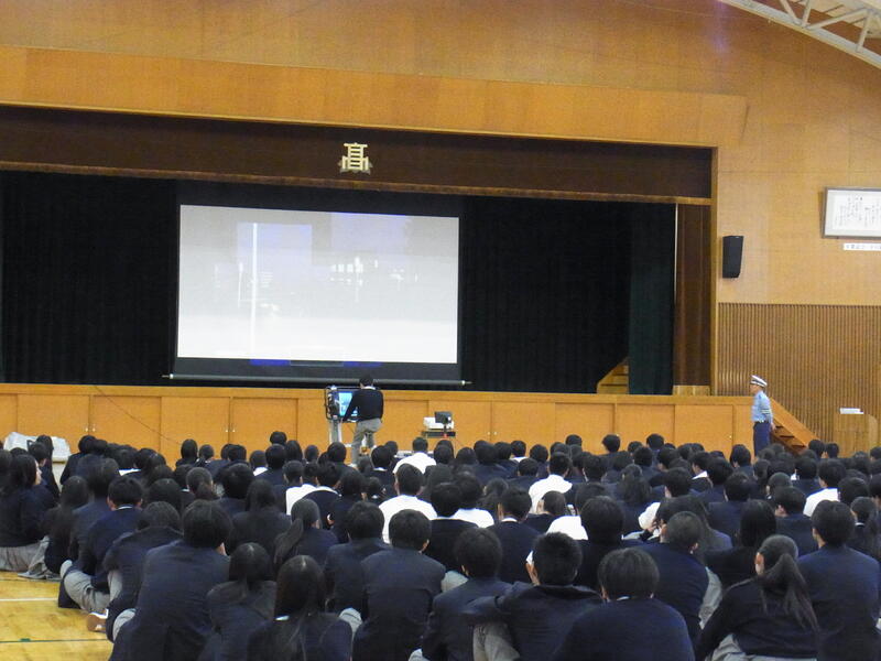 このたび、網干警察官友の会より本校生徒全員にヘルメットを配布していただきました。