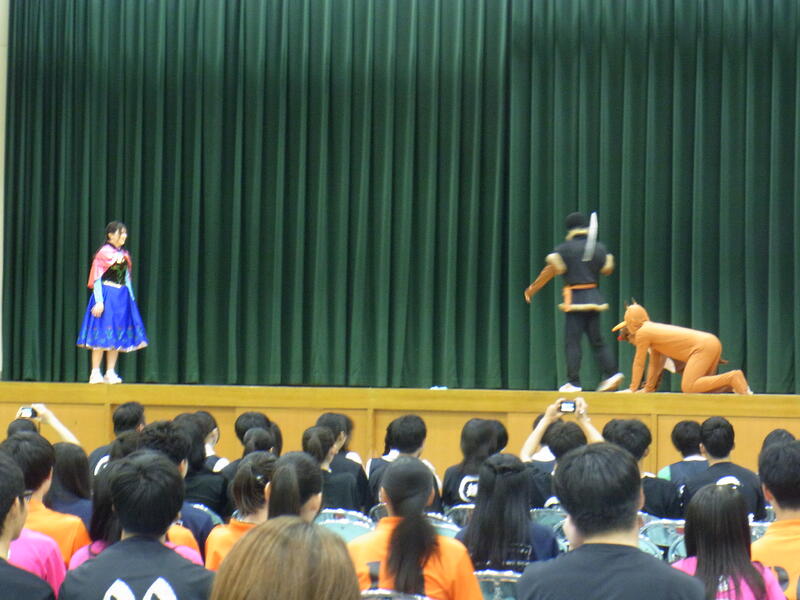 9月26日(金)、2日目は、3年生の生徒との日本文化の紹介の授業でした。グループに分かれて紹介したい日本文化をまとめたものを発表しました。昔遊びのグループは、実際にけん玉や紙相撲や福笑いなどを一緒にやったり、クイズ形式で紹介したり、それぞれ工夫を凝らしたテーマを紹介しました。