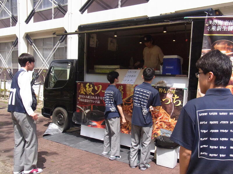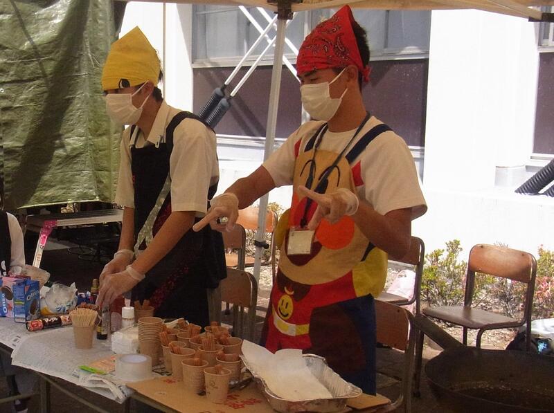 文化祭の会場では、家島高校の生徒やPTAの皆さんの屋台もあり、両部活の生徒もあれこれ見て楽しみました。