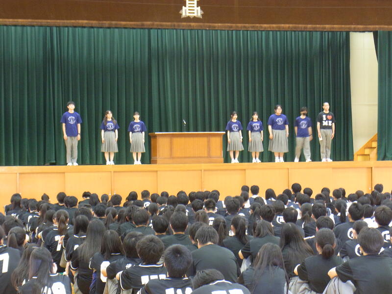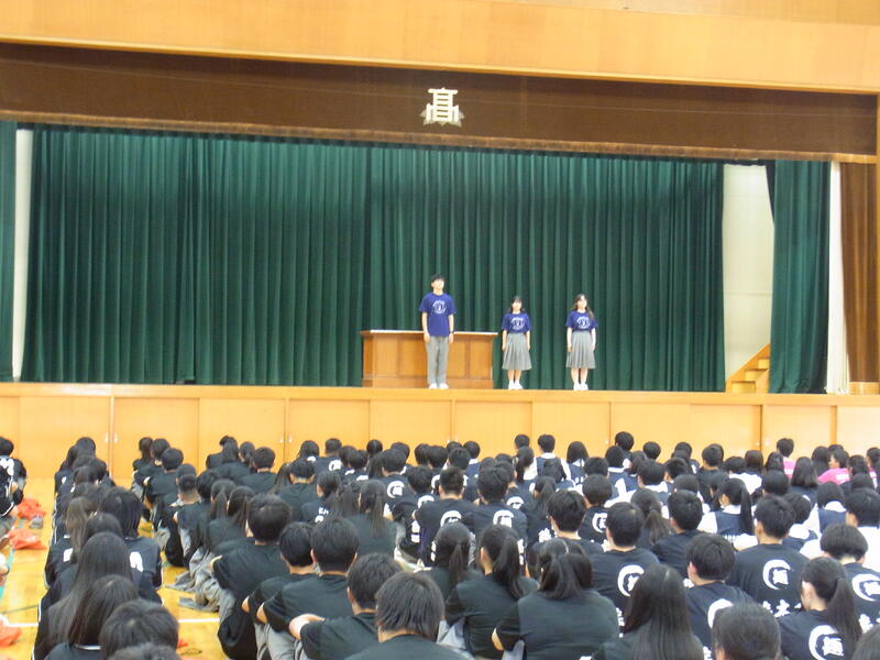 それぞれの部活からの挨拶を受け生徒会長からの応援の言葉のあと、全校生徒からは大きな拍手が送られました。