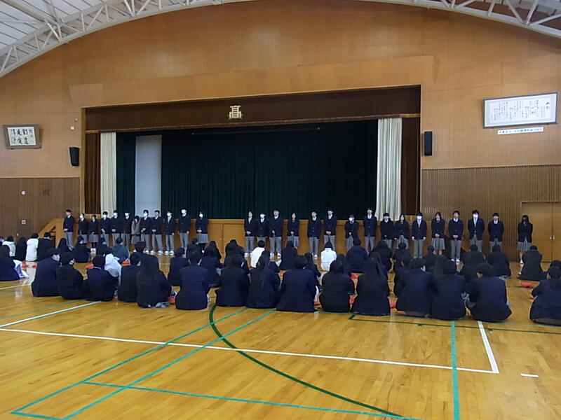 1月29日で卒業考査が終了し、1年間過ごした教室のワックス掛けも終わった3年生は、翌日の30日の登校日に行われた学年集会で、卒業式に歌う校歌の練習をしました。全体で練習をしたのちに、クラスごとに前に出て歌いました。全員で声を合わせて歌う機会ももう残すところ卒業式だけです。卒業式では、3年間の思いを込めてしっかりと声を出して最後の校歌を歌いましょう。