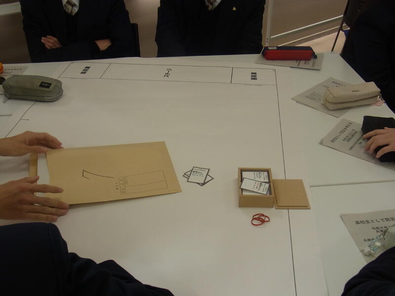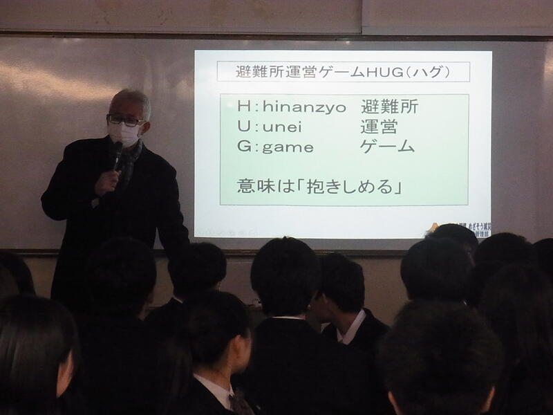 | 「避難所ゲームHUG」に挑戦する生徒達 | |