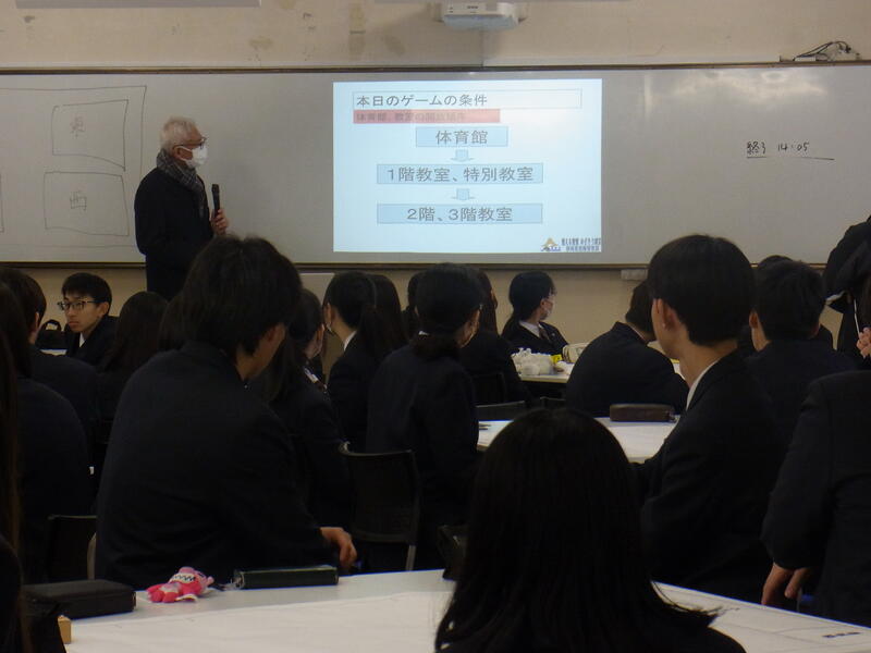 災害時の避難所に次から次に詰めかける地域の住民を、いかに手早く、その家族のことを考えながら居場所を決めて行くかはとても大切なことです。そして、避難所での生活に大切なのは、やはり他の人を思いやる気持ちです。高校生にもできることはたくさんあります。ゲームを通してではありますが、災害時の避難所設営の大変さを知ることは、現実に災害が起こった時に必ず役に立つはずです。今日のゲームの経験を記憶にとどめ、いざという時には、自分の頭で考えて地域の人と一緒に動けるようになっていきたいですね。
