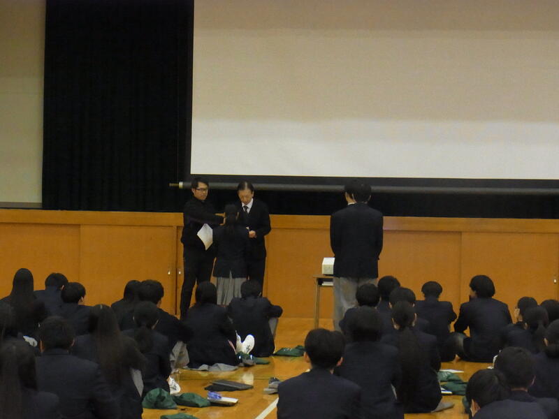 各チームの発表が終わるごとに全員がそれぞれ点数を付けていき、全チーム終了後に上位3チームの発表がありました。選ばれた3チームは校長先生より、症状が贈られました。