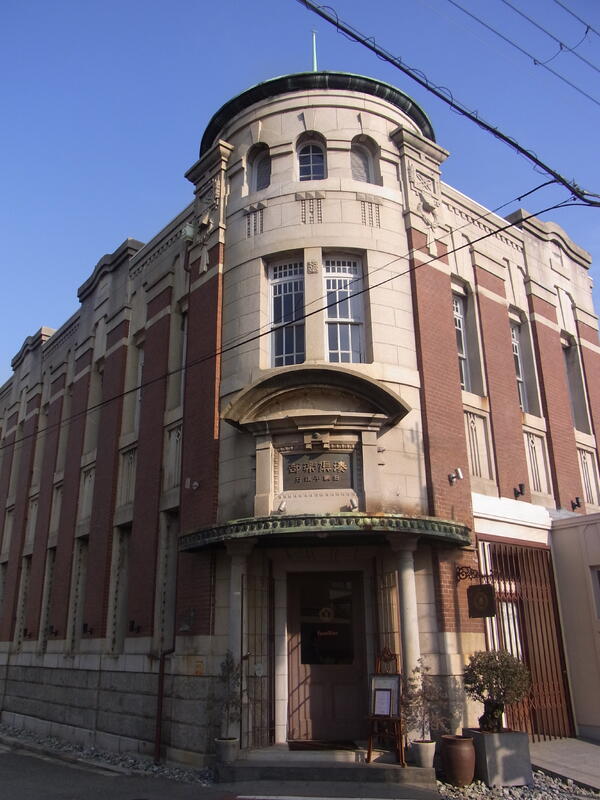発表会場として、場所をお借りした旧・網干銀行湊倶楽部は、現在はレストランとして営業をされていますが、もともとは大正11年に網干銀行本店として竣工されました。角の丸い玄関廻りとドーム屋根が特徴の煉瓦とタイルが印象的な趣のある建物です。現在は姫路市の景観重要建築物となっており、網干のランドマーク的な建物です。発表終了後、生徒達はそれぞれに、はじめて入った湊倶楽部の中を眺めたり記念写真を撮ったりしました。