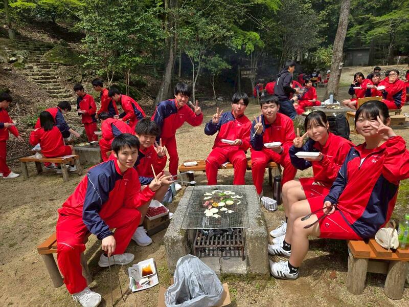 最後に大縄跳び大会、練習時間も少ない中でしたが、体育大会へ向けて良い課題が見つかりました。これからの学校生活でクラスの息が合ってくれば、体育大会では良い結果を期待できると感じました。天候にも恵まれ、1年生の良い表情もたくさん見ることができて、50回生として良い野外活動になりました。
