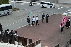 11月14日(金)、冷え込んできた早朝より、相生駅北側ロータリー及び中央改札口前では生徒会執行部、相生駅南側では1年1組が、それぞれ「さわやか挨拶運動」を実施しました。1年1組と生徒会メンバーの明るい挨拶が相生駅周辺に響き渡りました。