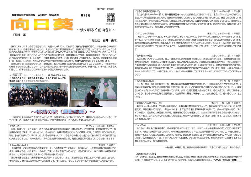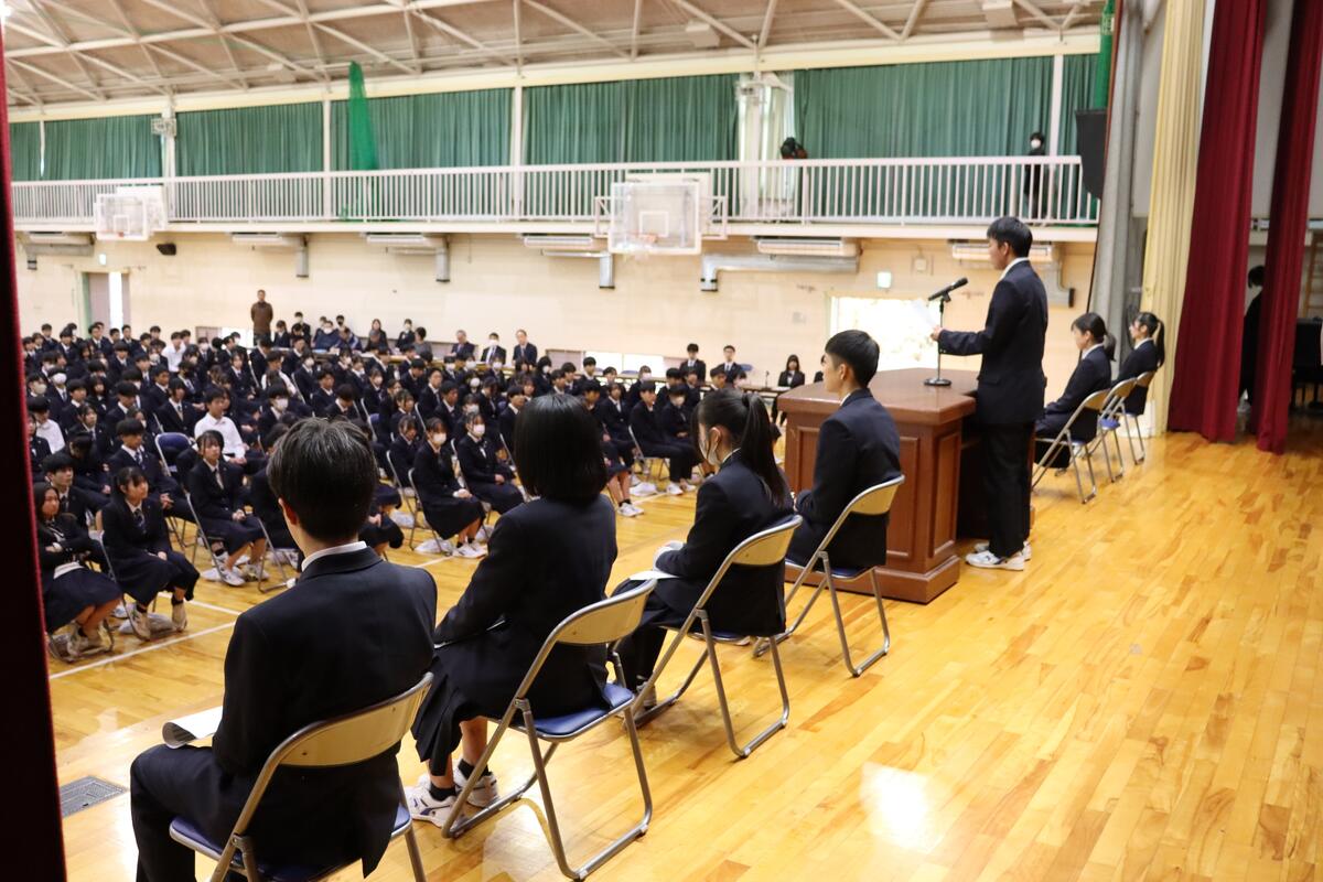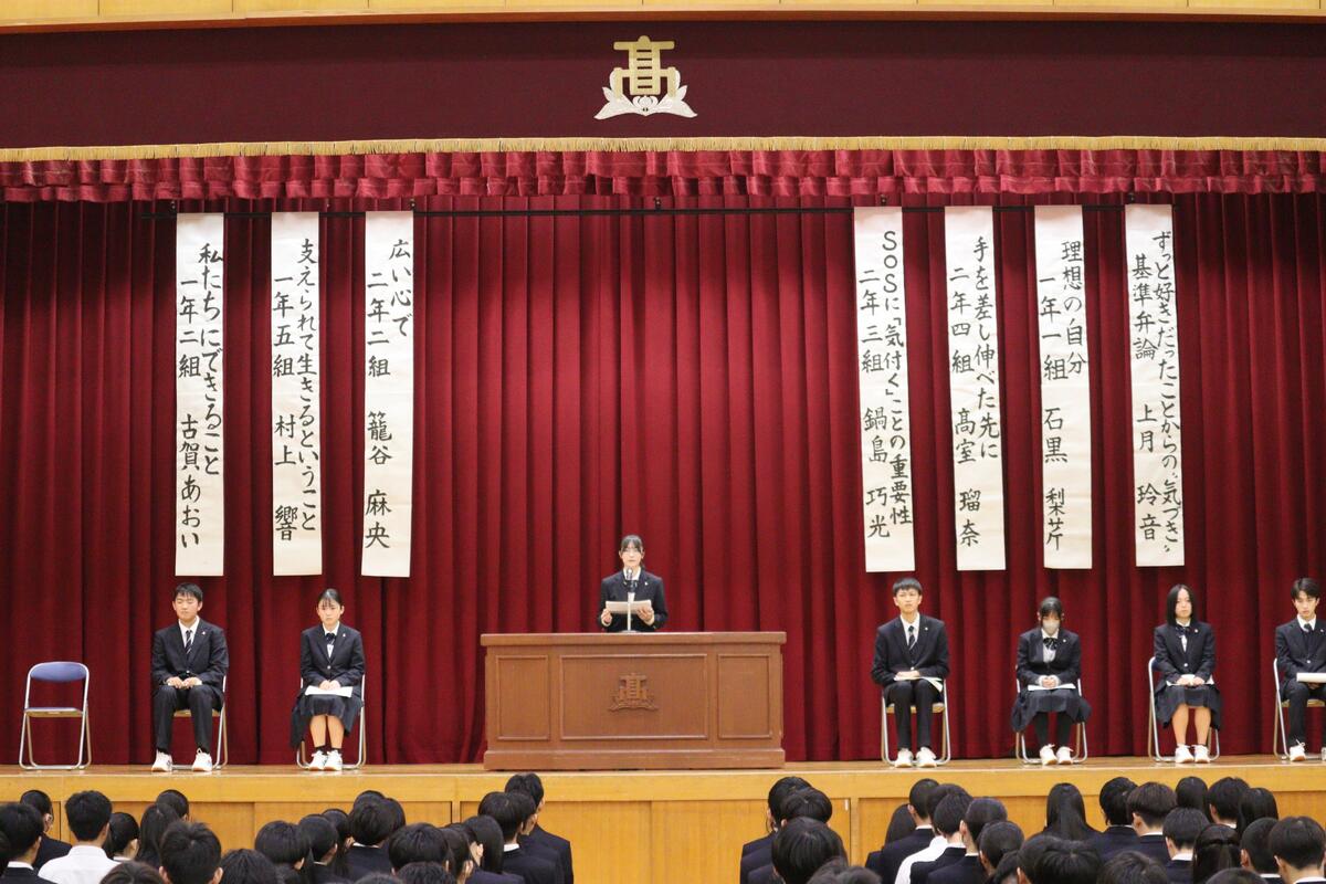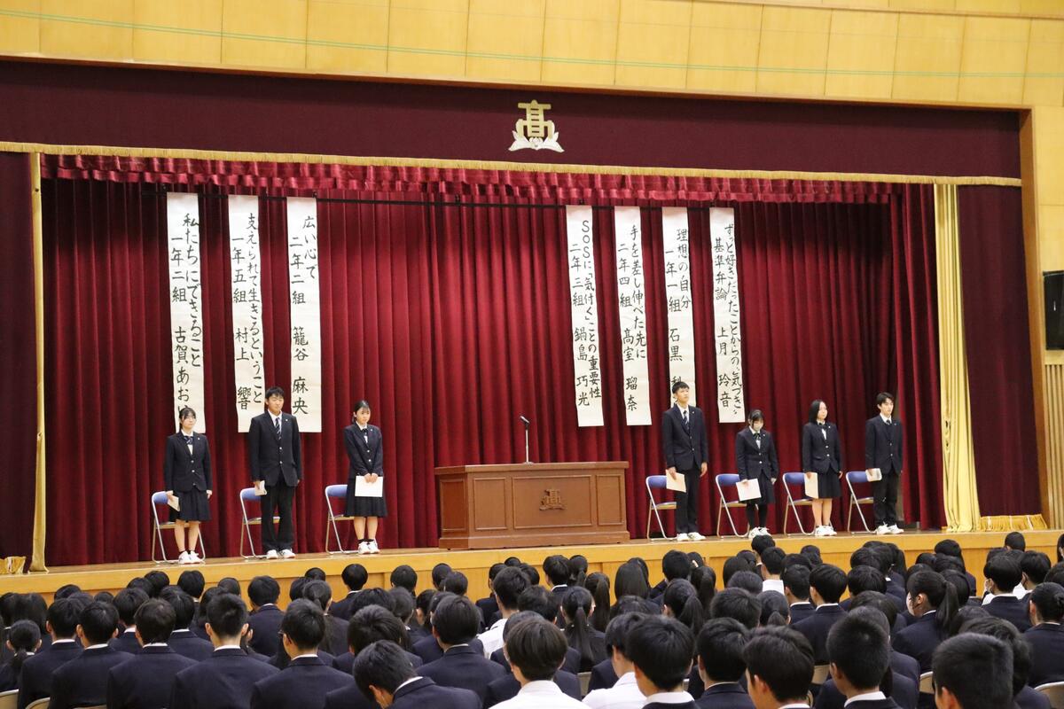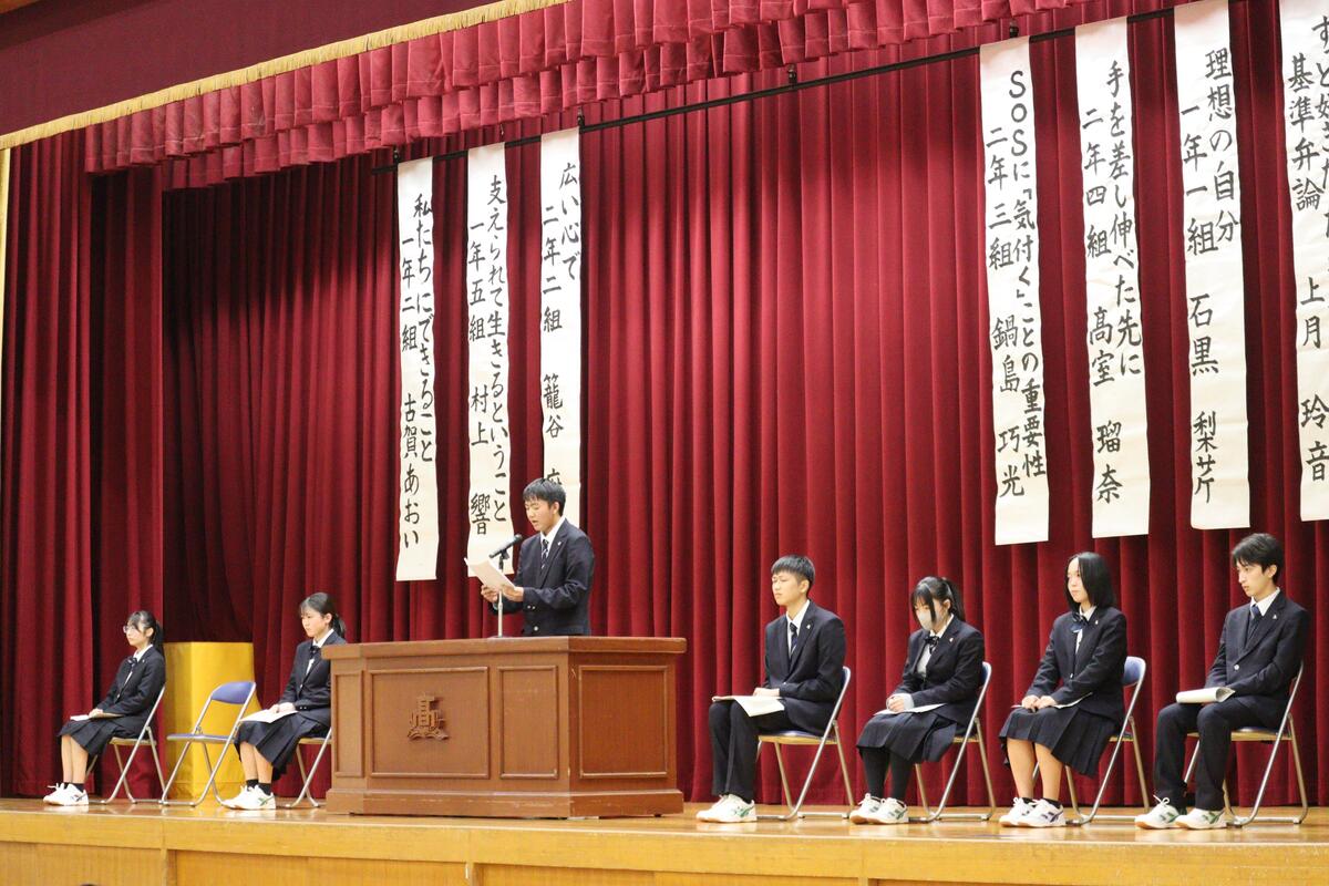 11月12日(水)、相高生フォーラム(弁論大会)が開催されました。49回生からは3名の弁士が学年代表として出場しました。緊張の中にも自分の思いを熱心に伝えようとする弁士の言葉に会場の生徒は聞き入っていました。最優秀賞は2年生、優秀賞には1年5組の村上君が選ばれました。放課後には通学路清掃が行われ、風紀委員・通学委員が通学路をきれいに掃除しました。