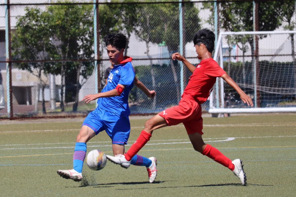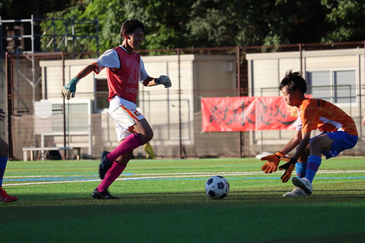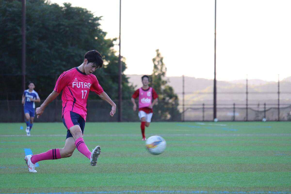 今日は人数が少ない中での試合でした。生駒高校とのゲームでは、失点してしまう場面が多くありました。全国大会にも出場しているチームとの対戦で、技術も体格も強度も違いを体感しました。キーパーが弾いた後にセカンドボールを拾われて失点してしまったり、センタリングで失点してしまったので、日々の練習でもっとディフェンスの強度を高めていきたいと思いました。北千里高校とのゲームでは、前半は失点してしまう場面があったけれど、後半からPKやミドルシュートで得点をする場面があったので良かったなと思いました。対戦していただいた生駒高校、北千里高校のみなさん会場提供いただいた関西国際大学のみなさんありがとうございました。