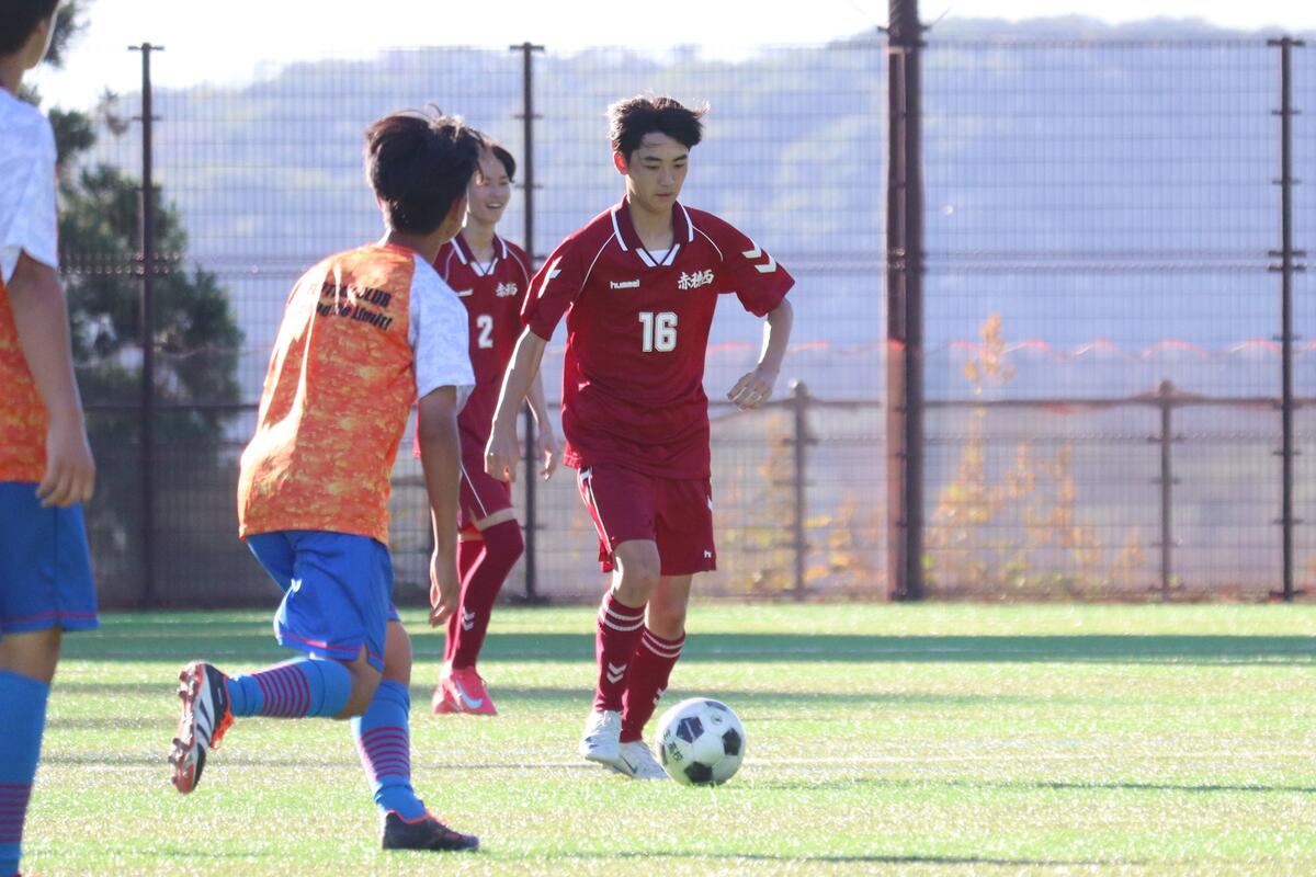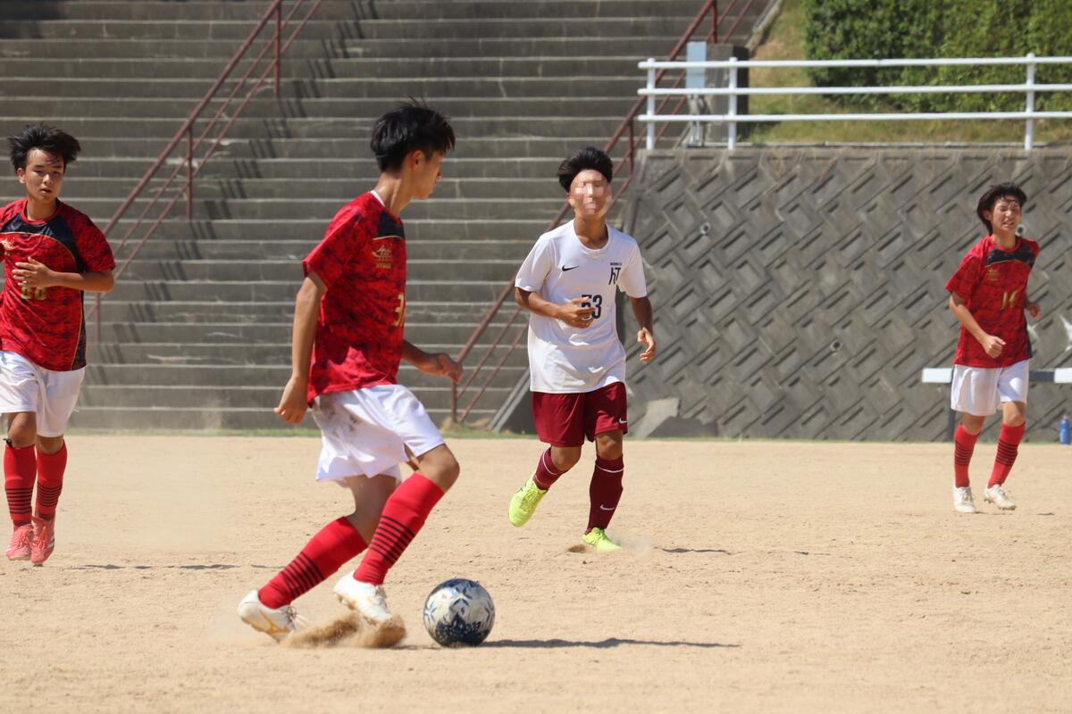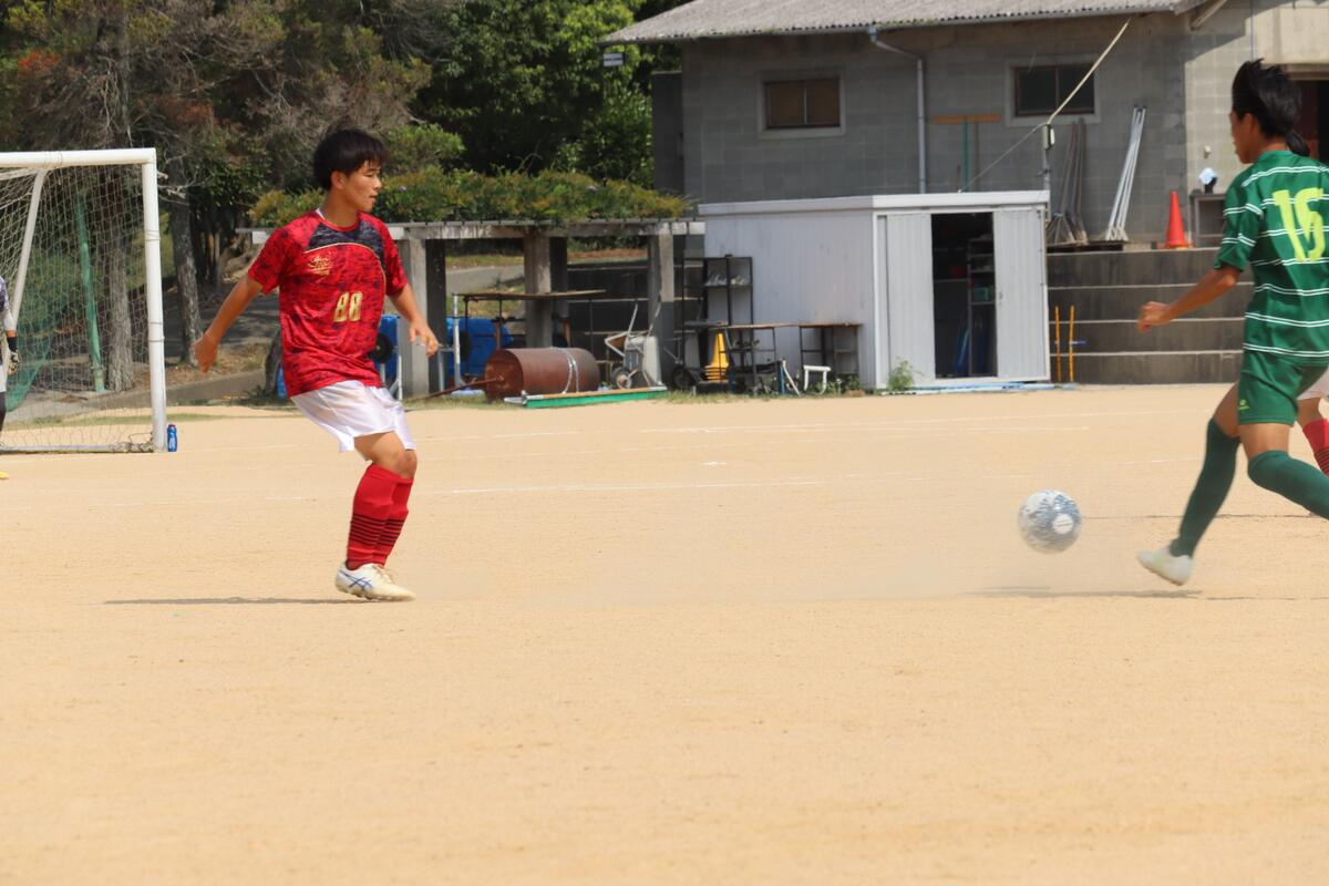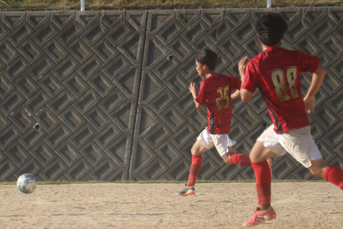 今日の相手は、県リーグ所属のチームでした。相生はリーグ戦を終え、3年生がほとんど抜けてしまい、また新たなスタートなる一戦でした。試合中はコミュニケーションがうまく取れず、かみ合わない場面がありました。しかし、ハーフタイムなどで積極的に話し合いをし、良い改善ができたところもありました。それは、2年生に自覚が出てきた表れでもあると思います。次からは、試合中にも改善できるようにしていければ、さらに進化できると思いました。今後の練習では、守備の連係を図りながら、コミュニケーションを増やせるようにしていきたいと思います。