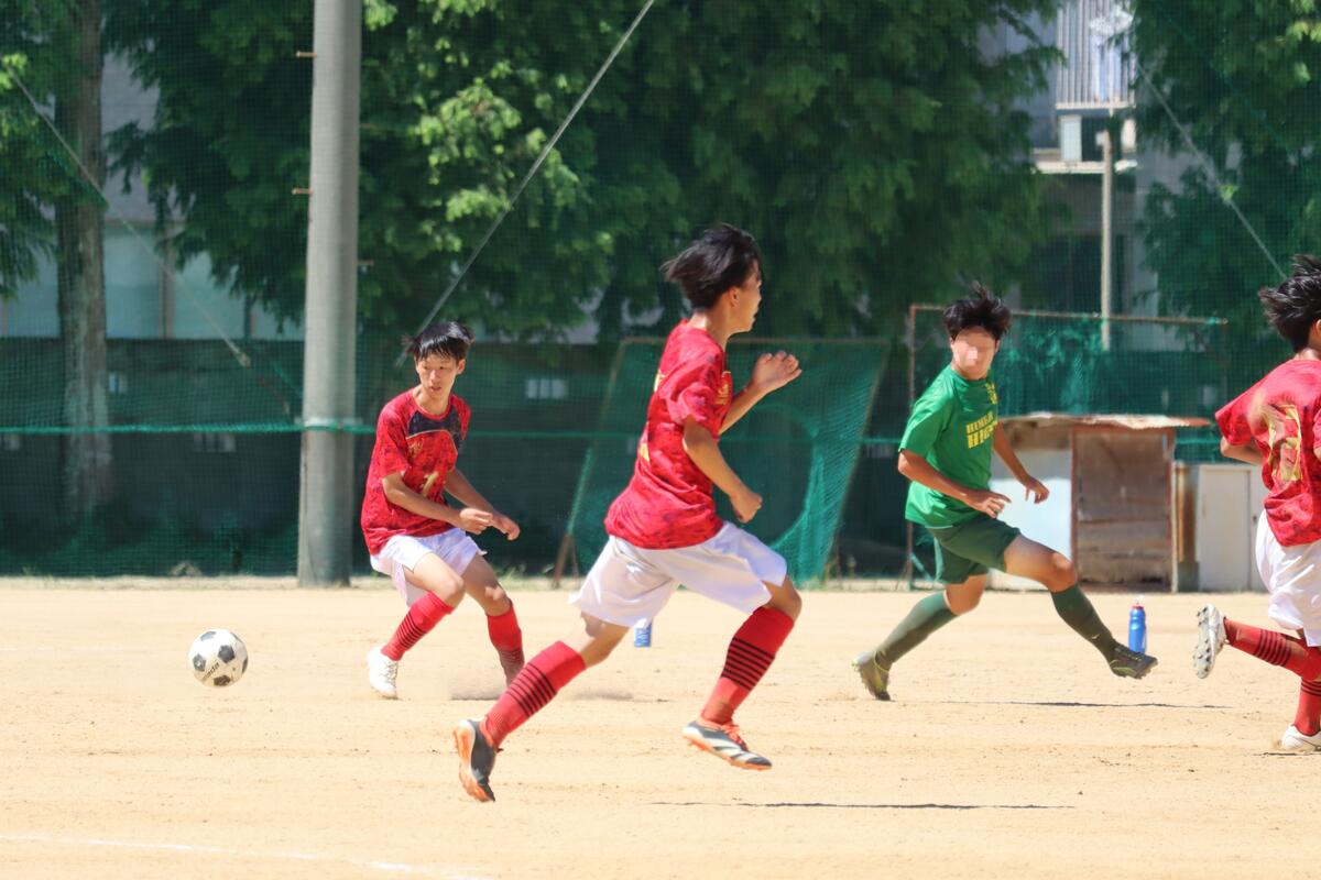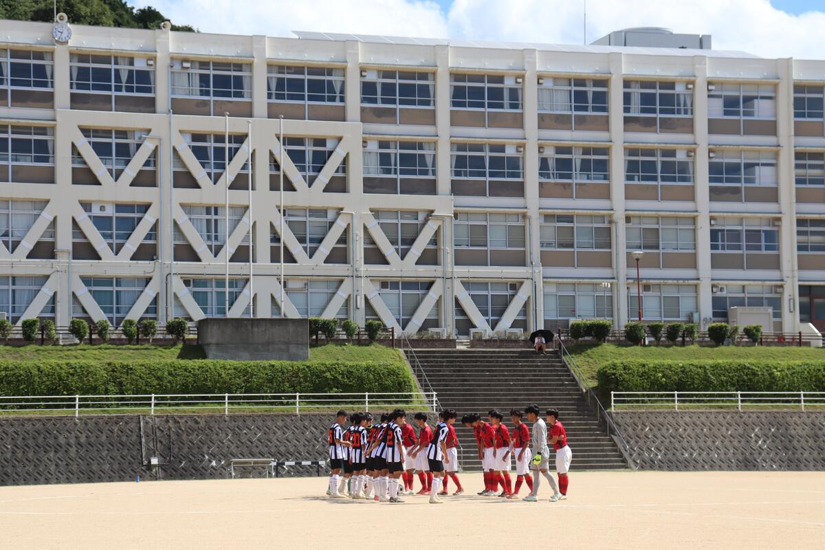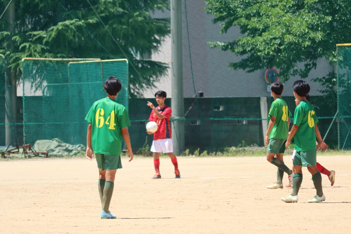 今日のゲームは、新チームになって始めての試合となりました。守備の徹底をテーマに行い、失点せず戦えている時間帯もありましたが、相手に支配される時間が長く、何度もピンチを迎える結果となってしまいました。試合を行う中で、守りながらチャンスをうかがい、機をみて攻撃を仕掛けることができるようになってくれば、より精度が高くなるのではと感じました。実際、本数をたくさんこなしましたが、得点できたのが数点しかなかったように思います。連動したチームでの守備、そもそも個人の守備をテーマに夏休み多くのトレマッチをこなしていき、積み上げていきたいなと思います。対戦していただいた北千里高校のみなさん、本日はありがとうございました。
