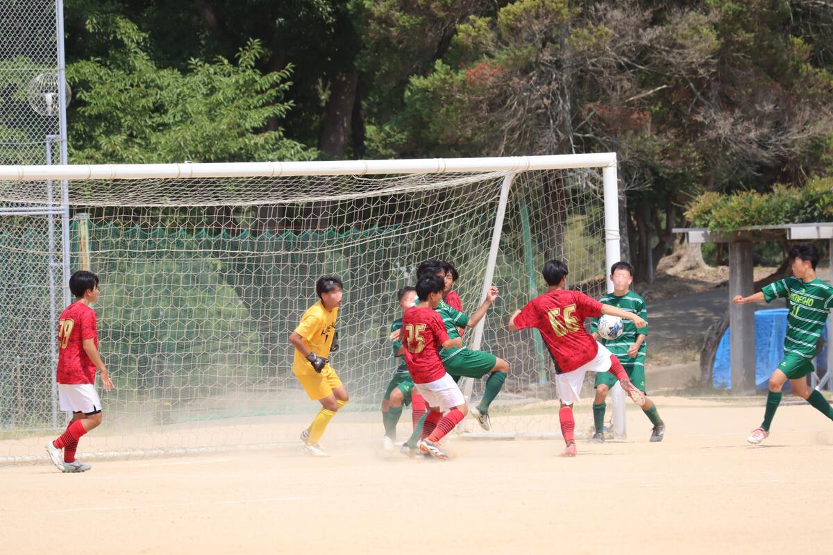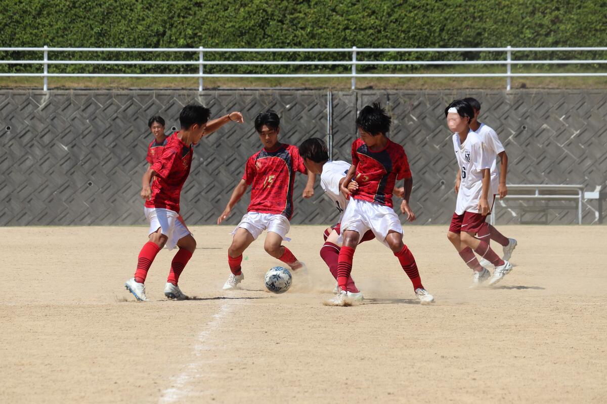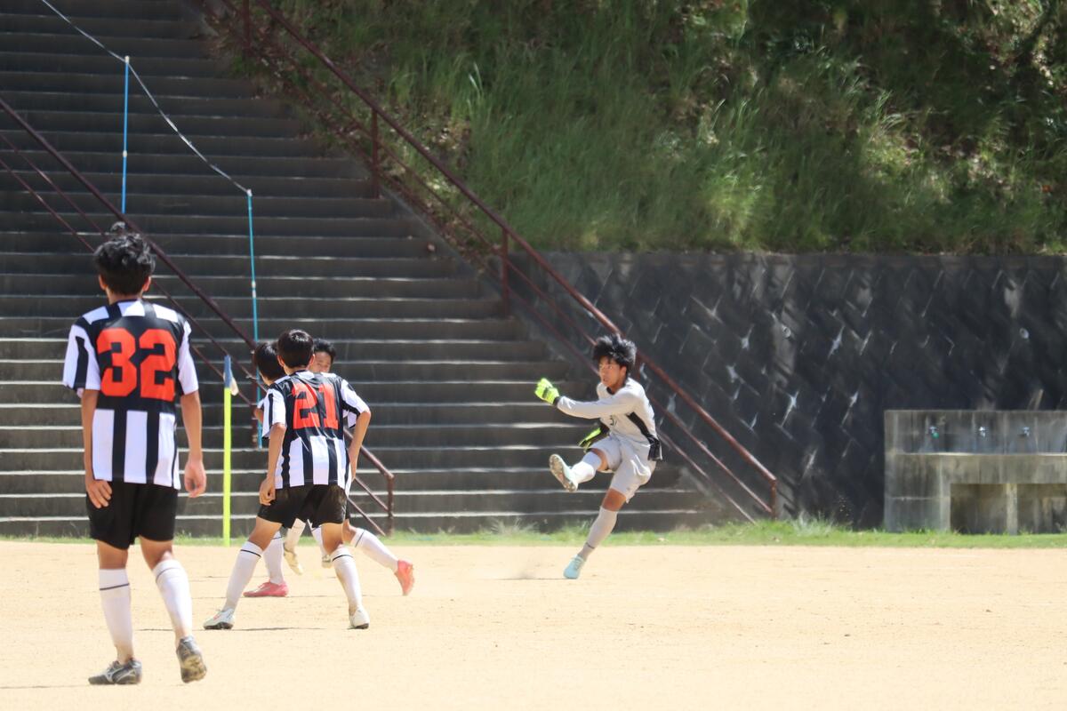 今日は西播大会の初戦でした。ゲームの入りから流れがあまり良くなく、焦ったプレーが多いと感じました。試合が始まって早々にセットプレーから失点してしまい、もったいない形でリードされる展開になりました。後半に入っても攻めても点を取りきれないことが多くあり、初戦敗退となってしまいました。2年生は残り半年ほどで最後の総体を迎えるので悔いのない結果にするため、また一から積み上げて頑張っていこうと思います。