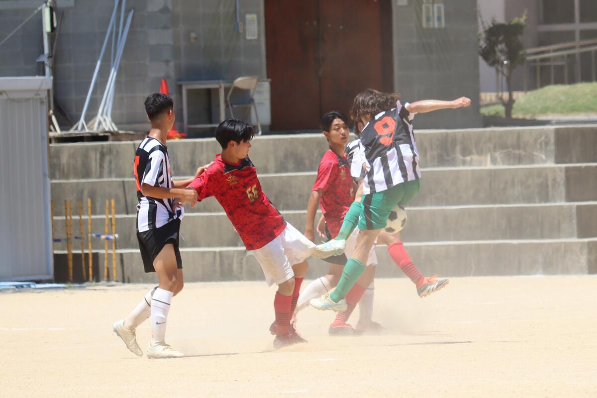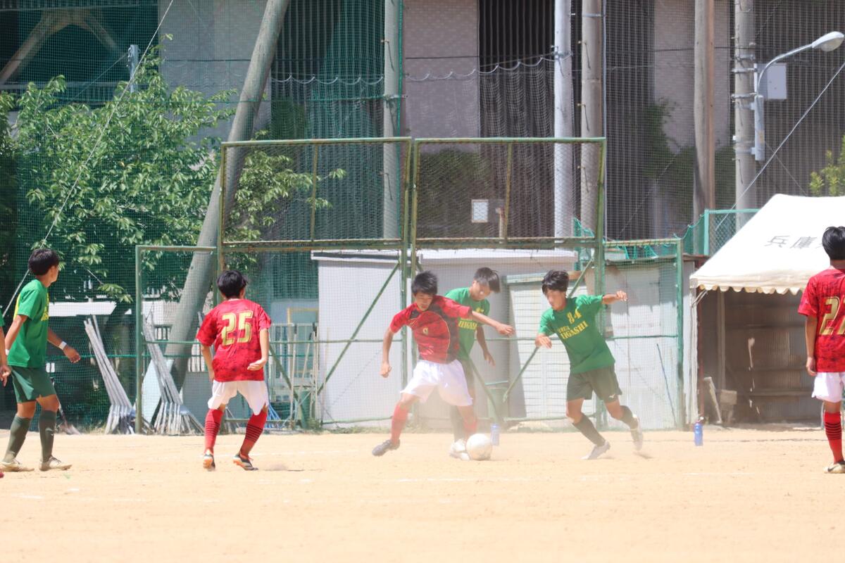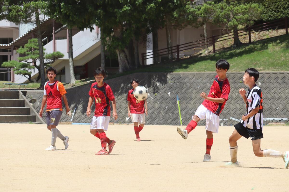 けが人や体調不良で人数が少ない試合でした。攻撃面では、チャンスを作ることができていたので、シュートまでいけるように試合を想定して練習に取り組みたいです。守備面では、5本目の試合でコーナーで失点してしまう場面があったのでヘディングの練習をもっと意識して取り組みたいです。期末考査があるのでテストに向けて集中して勉強し、テスト明けからの練習では切り替えて練習に励みたいです。対戦していただいた姫路高校のみなさん、ありがとうございました。