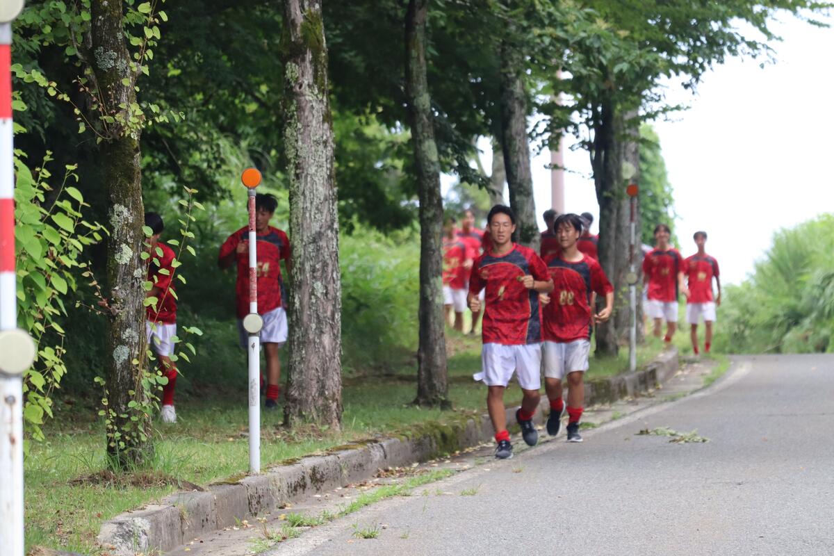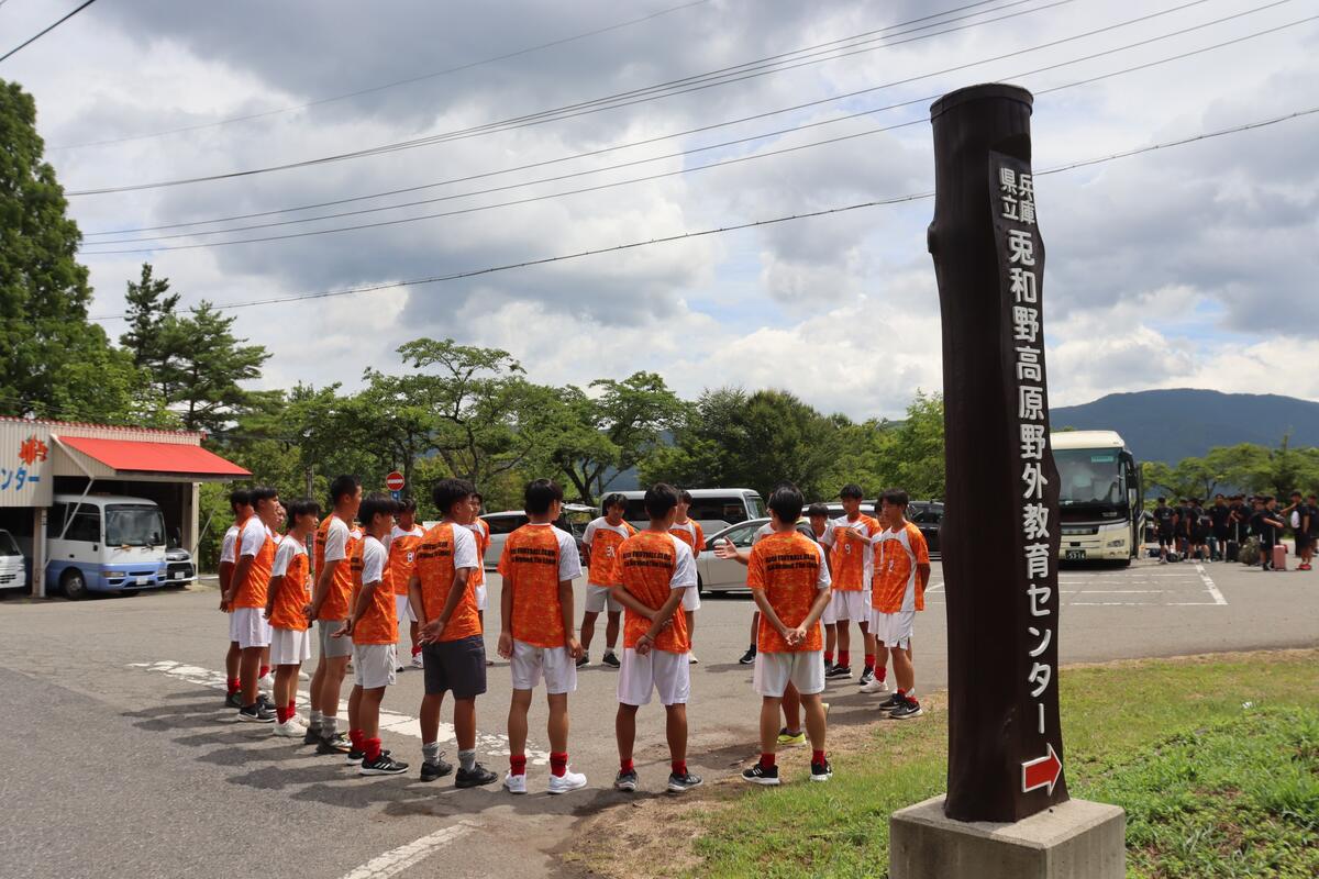 2泊3日の兎和野高原合宿がスタートしました。現地到着後、ラントレーニングで麓まで往復したあと、神港学園と練習試合を行いました。昼食をとり、午後からはメンタル講習を受け、気持ちの持ち方について学びました。その後、筋力トレーニングを行い、宿舎に入りました。