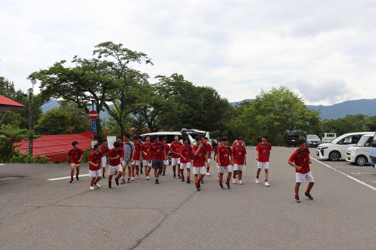 兎和野高原で2泊3日の合宿をしました。到着後のラントレーニングから始まり、強度の高い相手との試合、チューブを使った筋力向上トレーニングなどを行いました。試合の空き時間には、講師の方にメンタル講習会を開いていただき、より良い選手になれる気持ちの持ち方を教わりました。また、宿舎では食事トレーニングをしたり、チーム内でたくさんコミュニケーションをとることができ、有意義な時間を過ごせたと思います。3日目の試合が終わると、展望台に行き、写真撮影をして3日間を締めくくりました。この合宿を通して、強度の高いチームを相手に戦い抜くこと、しんどいトレーニングでも声をかけあって乗り越える力を身につけることができたと思います。対戦してくださった相手チーム、運営していただいた芦屋学園サッカー部のスタッフの方々、そして、食事を用意してくださった宿舎の方々、そして快く送り出してくれた保護者の方々、3日間ありがとうございました。