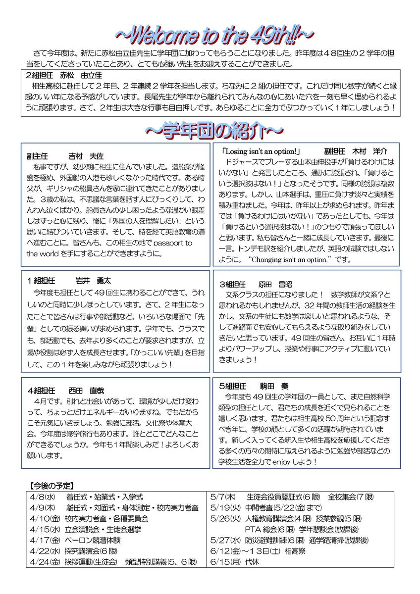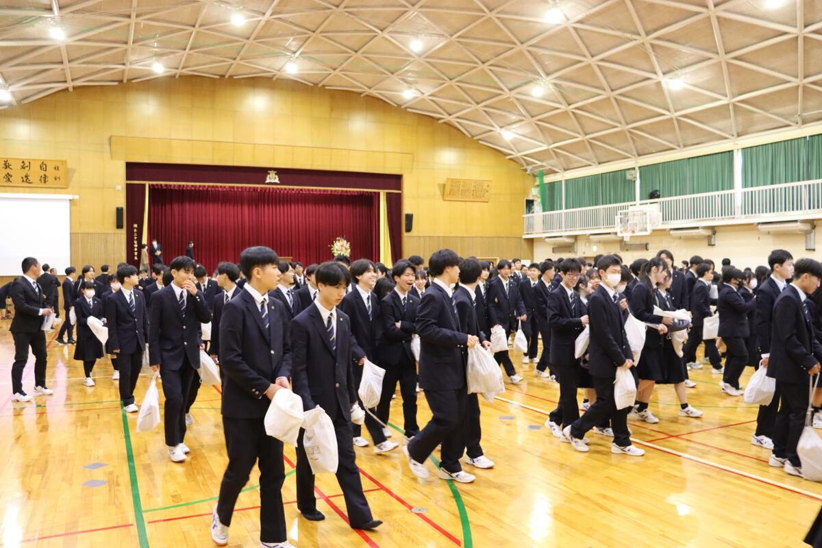 4月8日(水)、始業式が行われました。早朝から昇降口に貼り出された新クラス名簿を見て歓声があがっていました。始業式後は、新クラスでの最初のホームルームがあり、慌ただしい中、第2学年に進級しての初日を終えました。中核学年としての1年間を充実したものにしてほしいと思います!