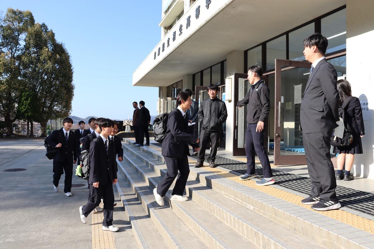 2月6日(金)、早朝7時半より「さわやか挨拶運動」を実施しました。今月は、生徒会メンバーに加えて、1年4組の半分の18名が一緒に行いました。
