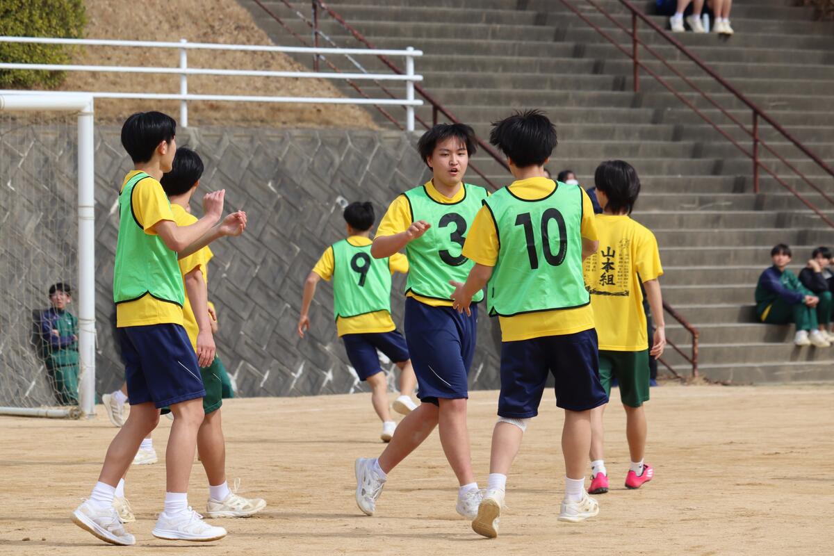 49回生 後期球技大会で奮闘! 投稿日時 : 03/02 49回生 3月2日(月)に後期球技大会が行われました。この時期にしては暖かく運動に適した気候の中で、笑顔でプレーし、皆で球技を楽しみました。1年生最後の学校行事になりましたが、クラスの絆をさらに深め、良い締めくくりができました。