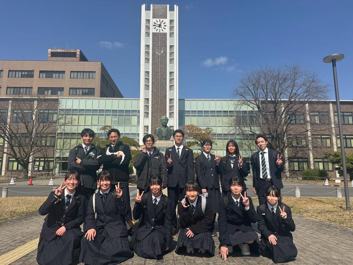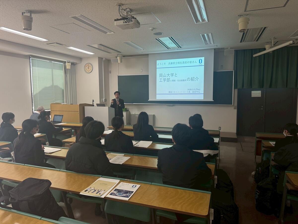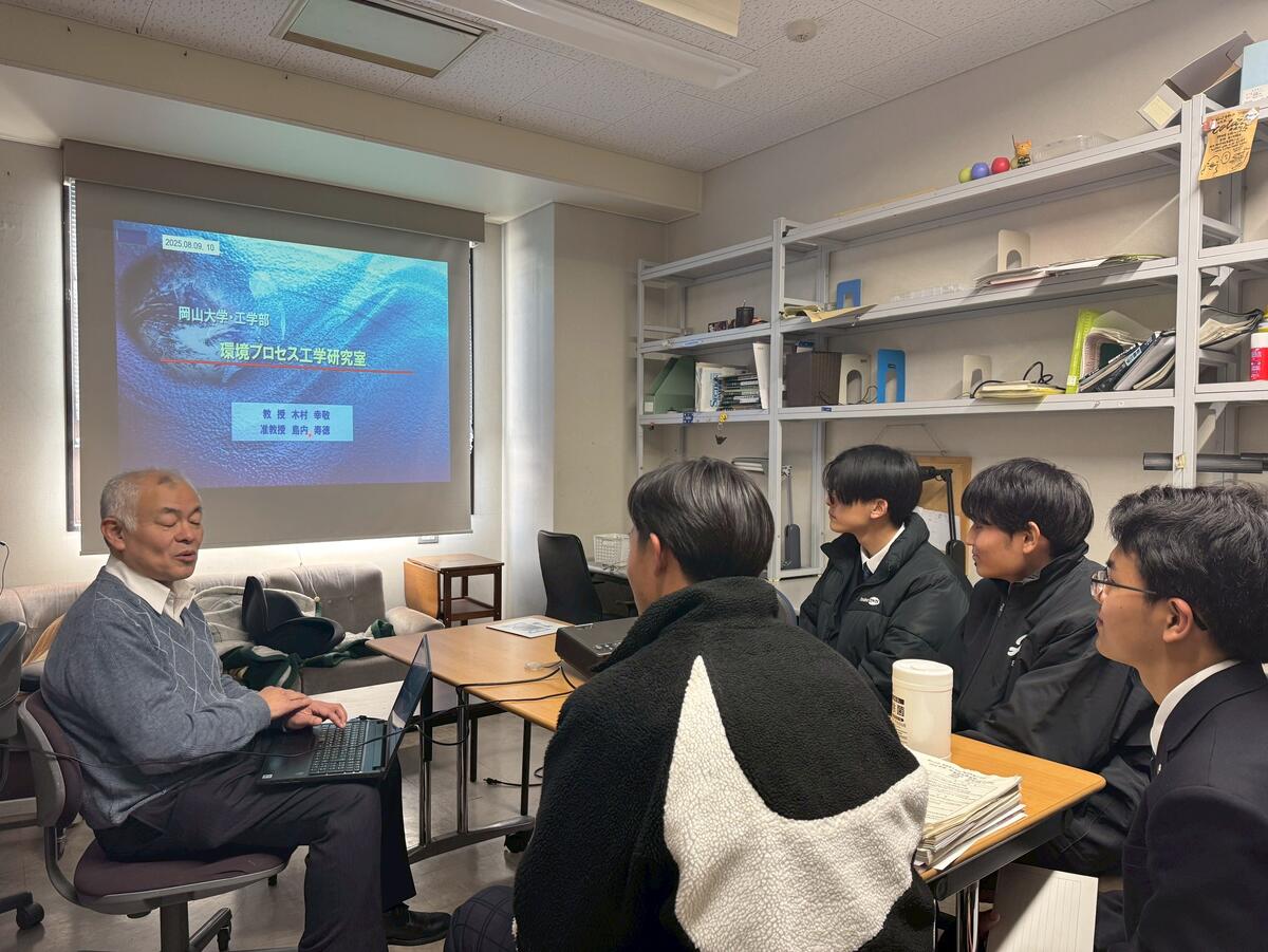 3月5日(木)、魅力アップ推進事業の一環として、岡山大学工学部環境・社会基盤系の研究室を訪問しました。参加したのは、1年生自然科学類型の希望者12名です。