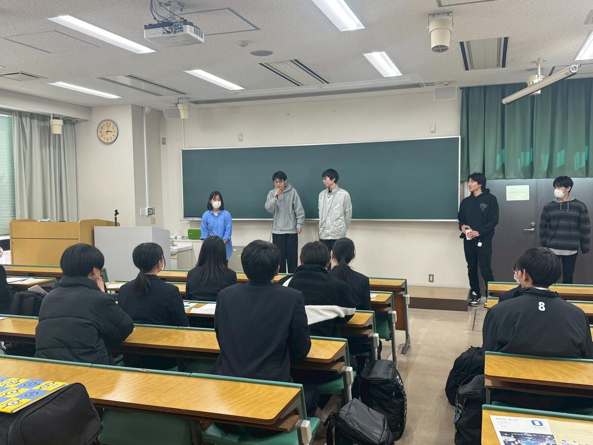 また、現役学生さんとの懇談会では、大学の授業のこと、サークル活動のこと、下宿生活のことなど、気になっていることをなんでも気軽に聞くことができ、参加した生徒は非常に満足し、大学生活というものに大きな希望と期待と抱いた様子でした。