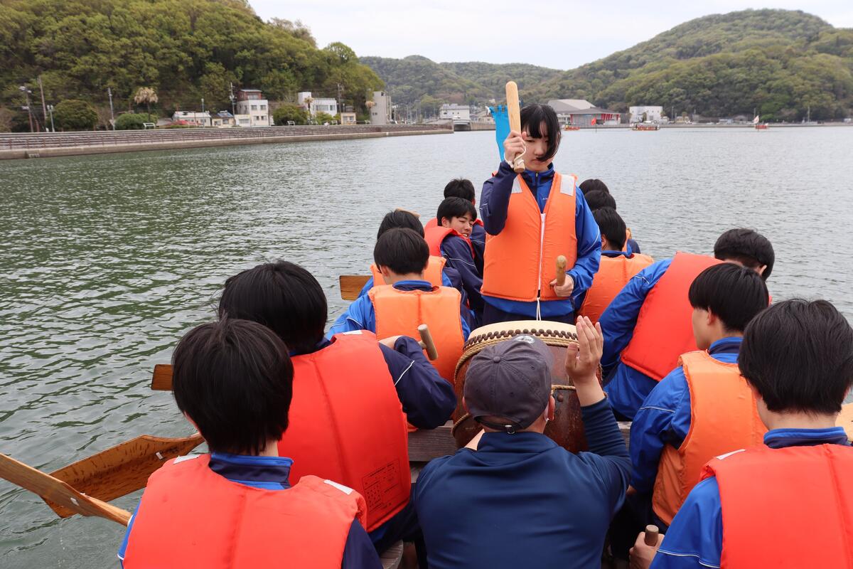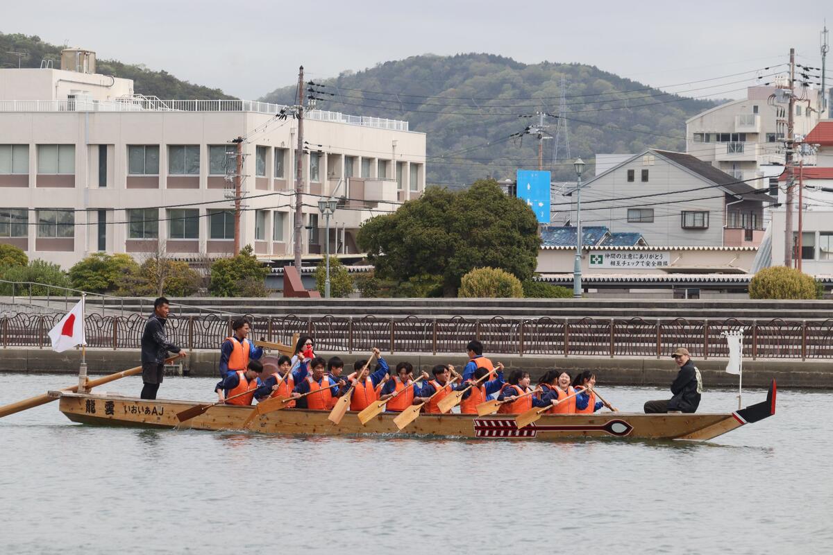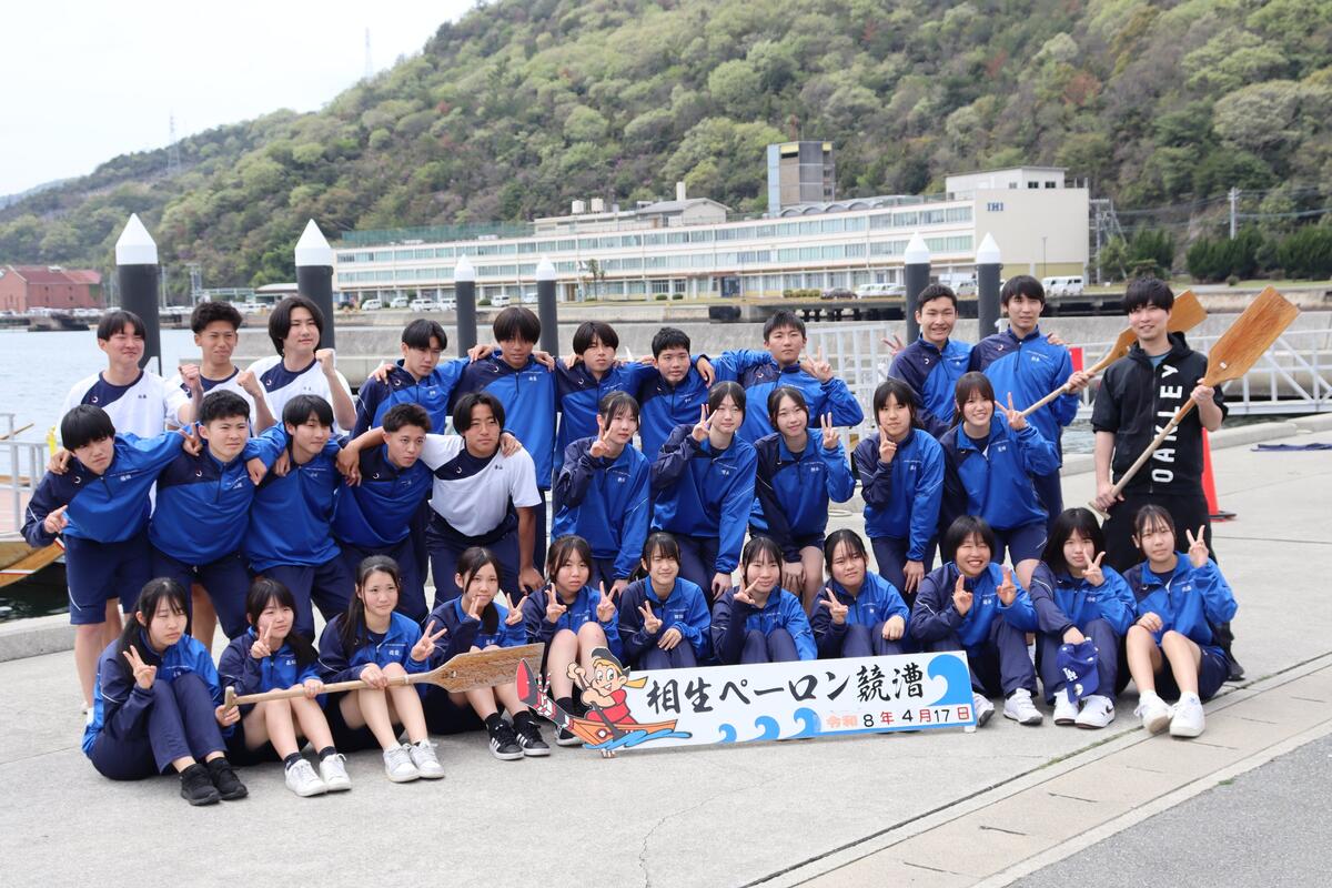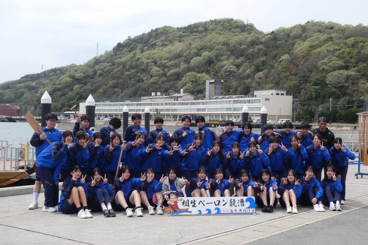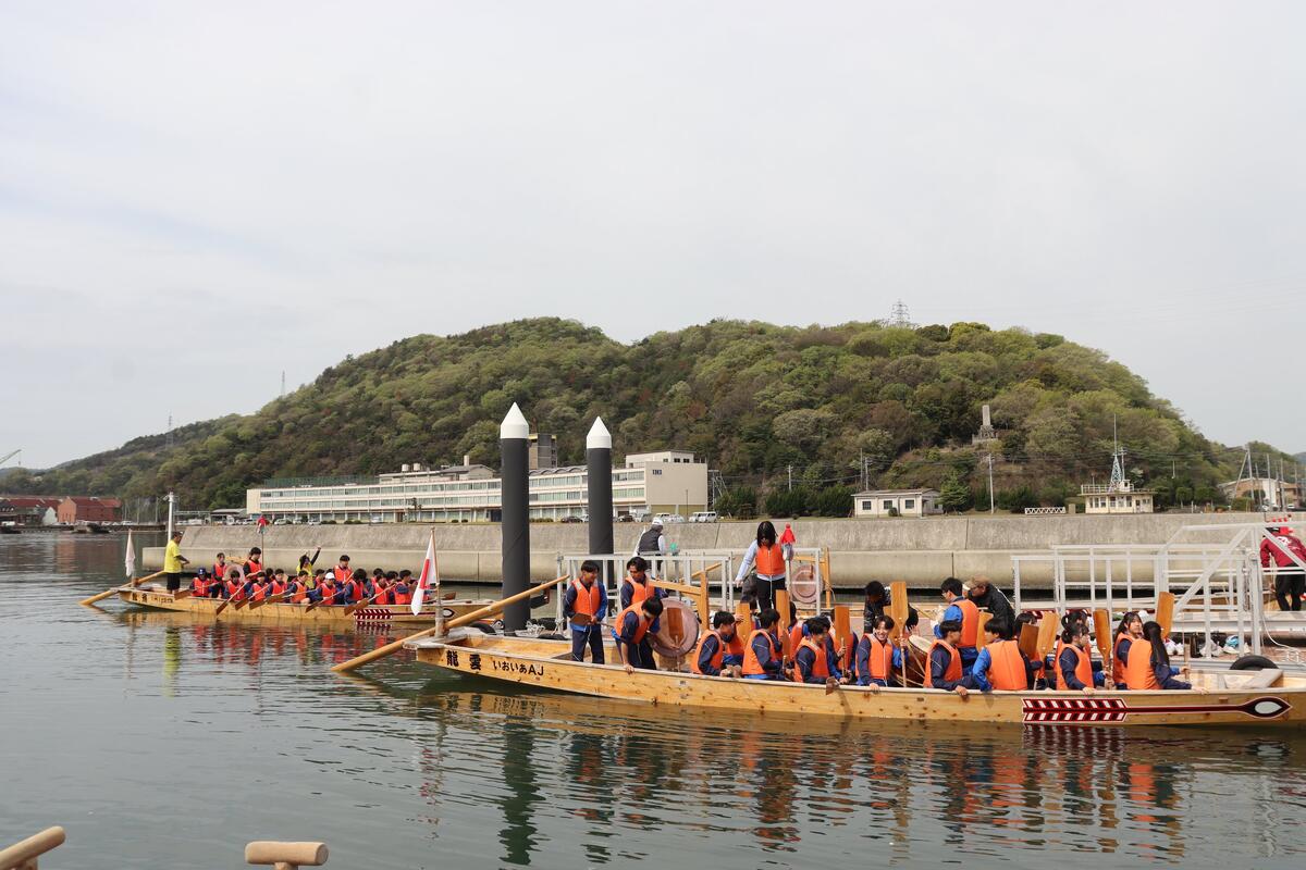 晴天に恵まれた4月17日(金)、新学年になり新たなクラスの親睦と団結力を高めるねらいを込めて、相生市が誇る伝統行事「ペーロン競漕」体験を実施しました。