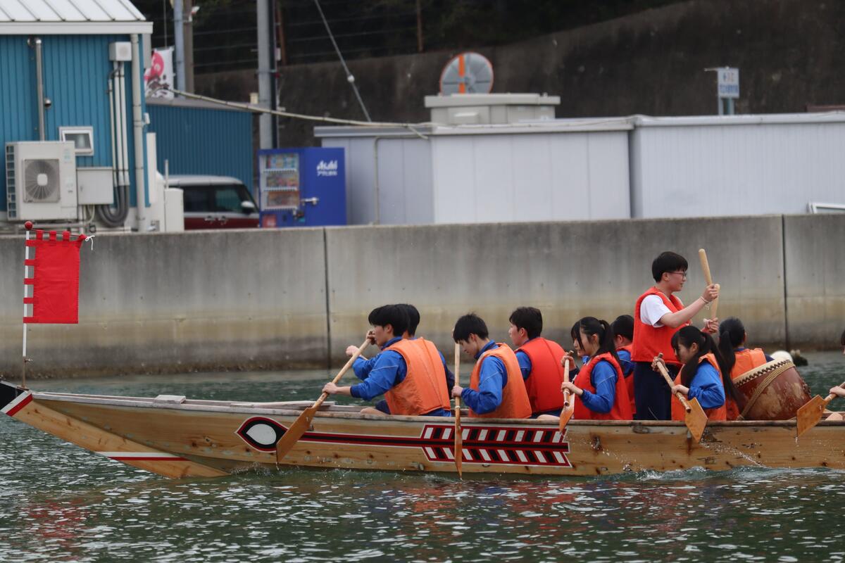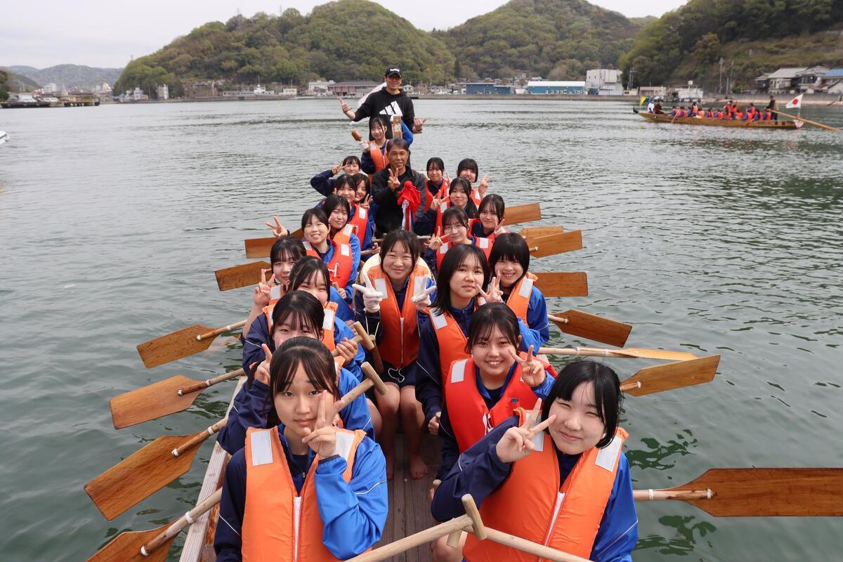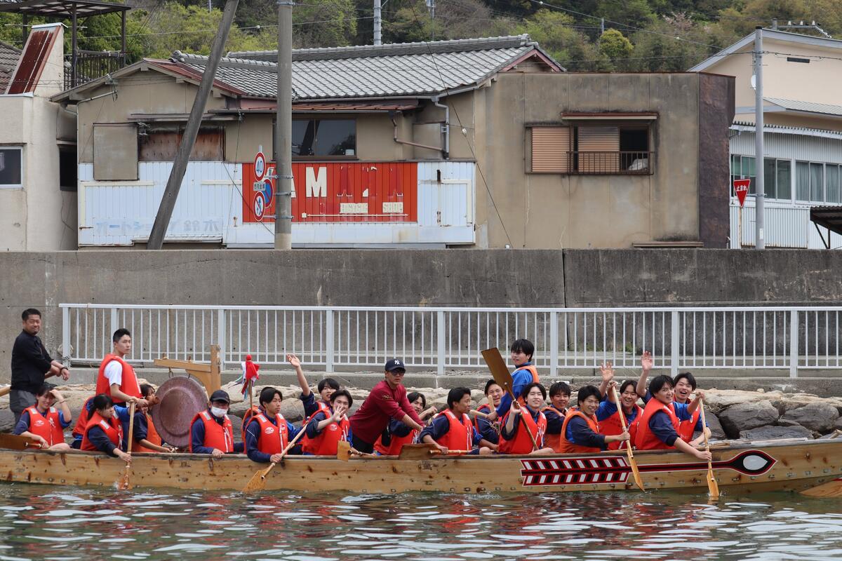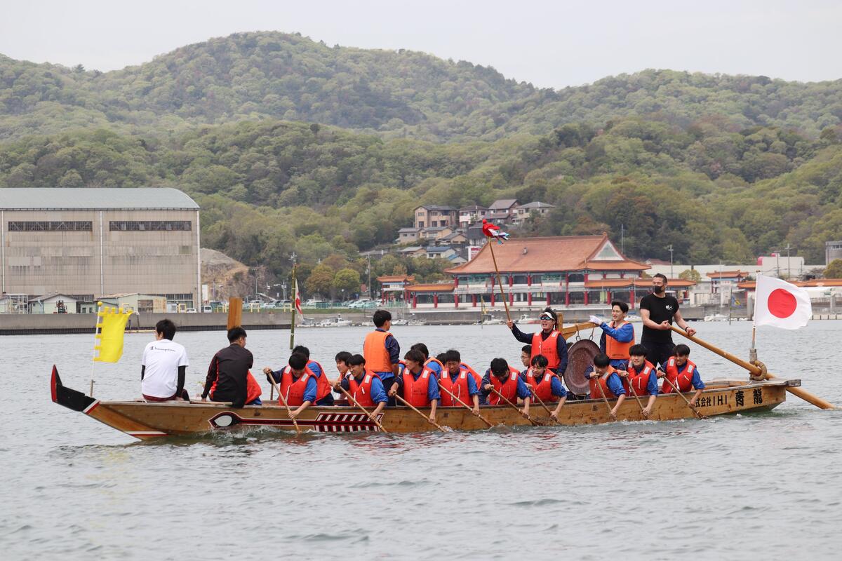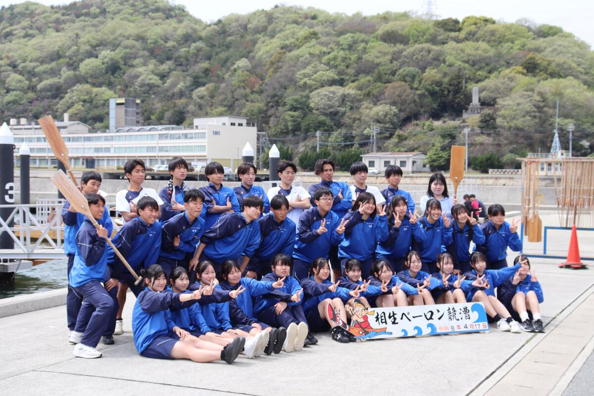 晴天に恵まれた4月17日(金)、新学年になり新たなクラスの親睦と団結力を高めるねらいを込めて、相生市が誇る伝統行事「ペーロン競漕」体験を実施しました。