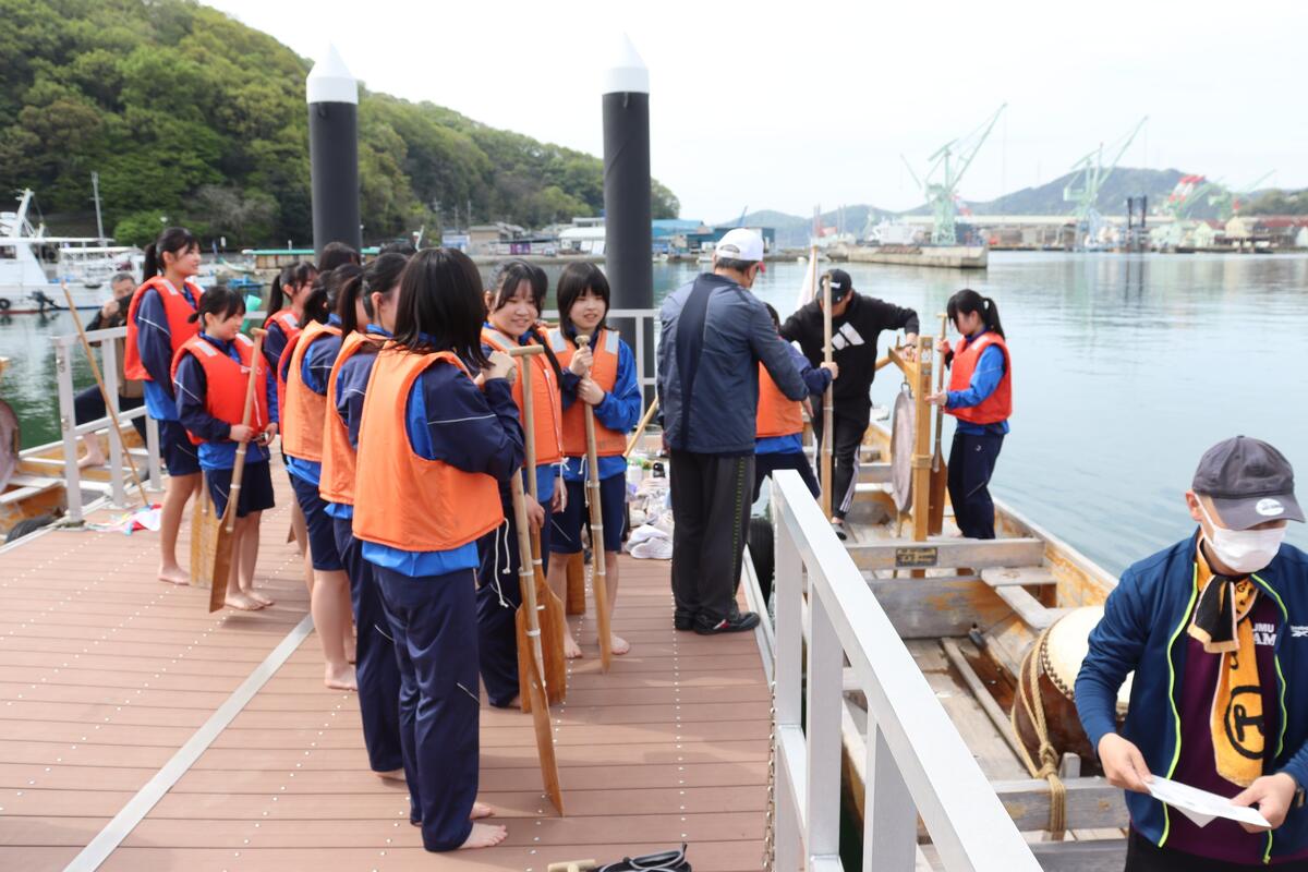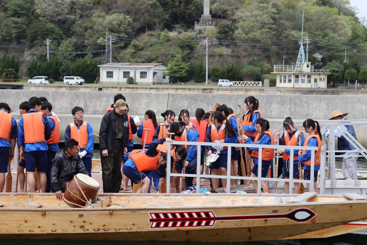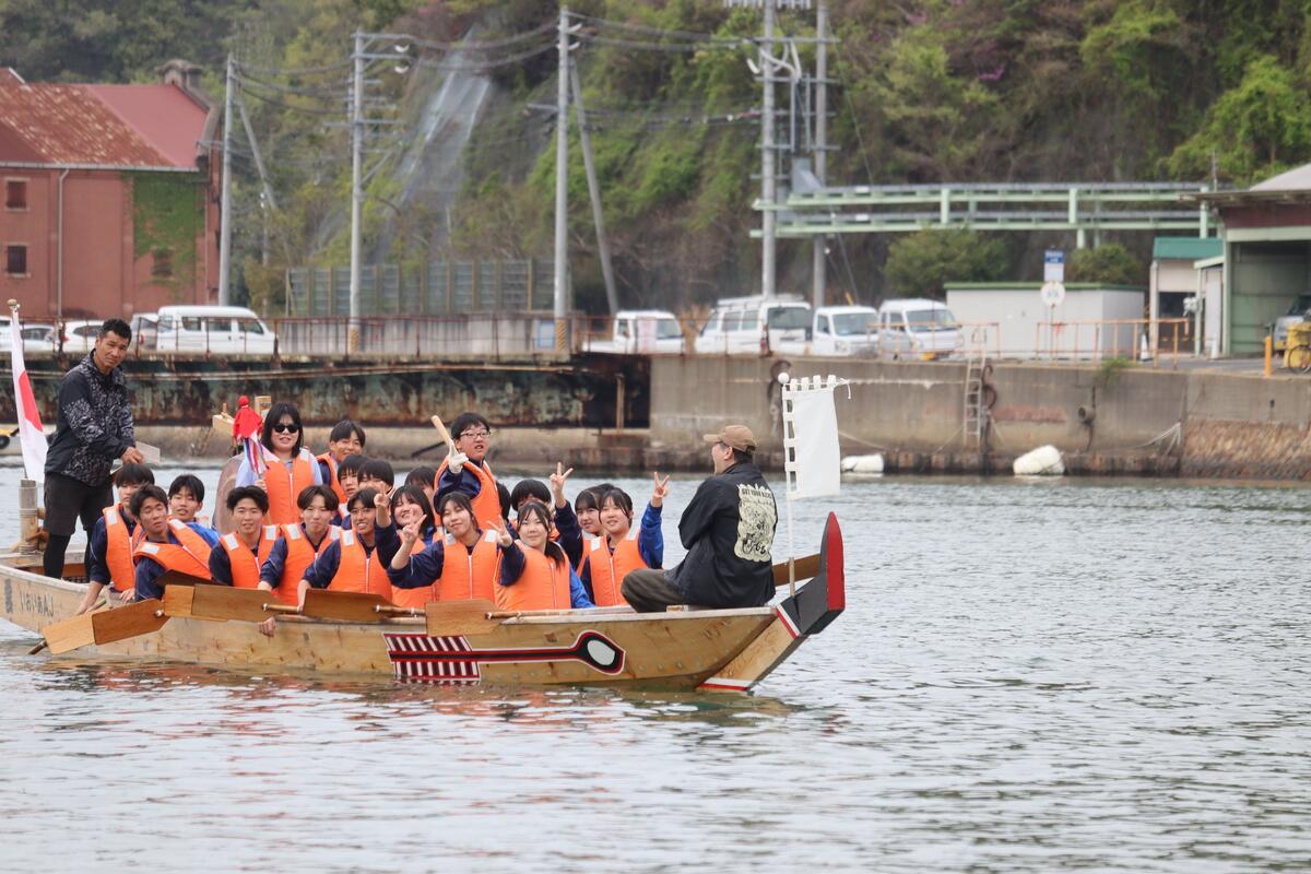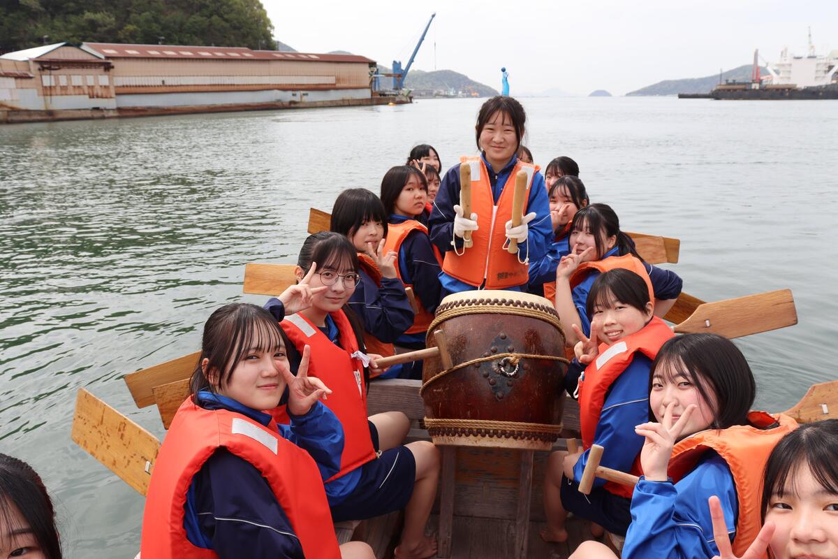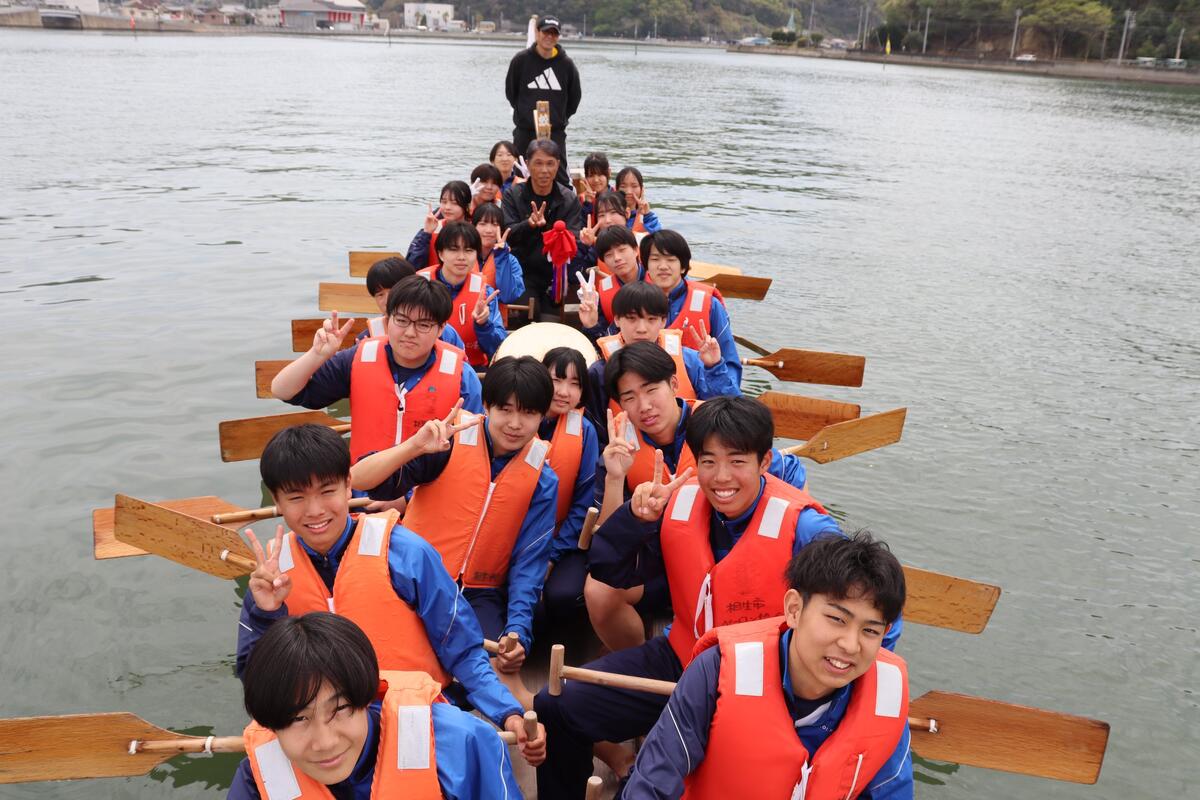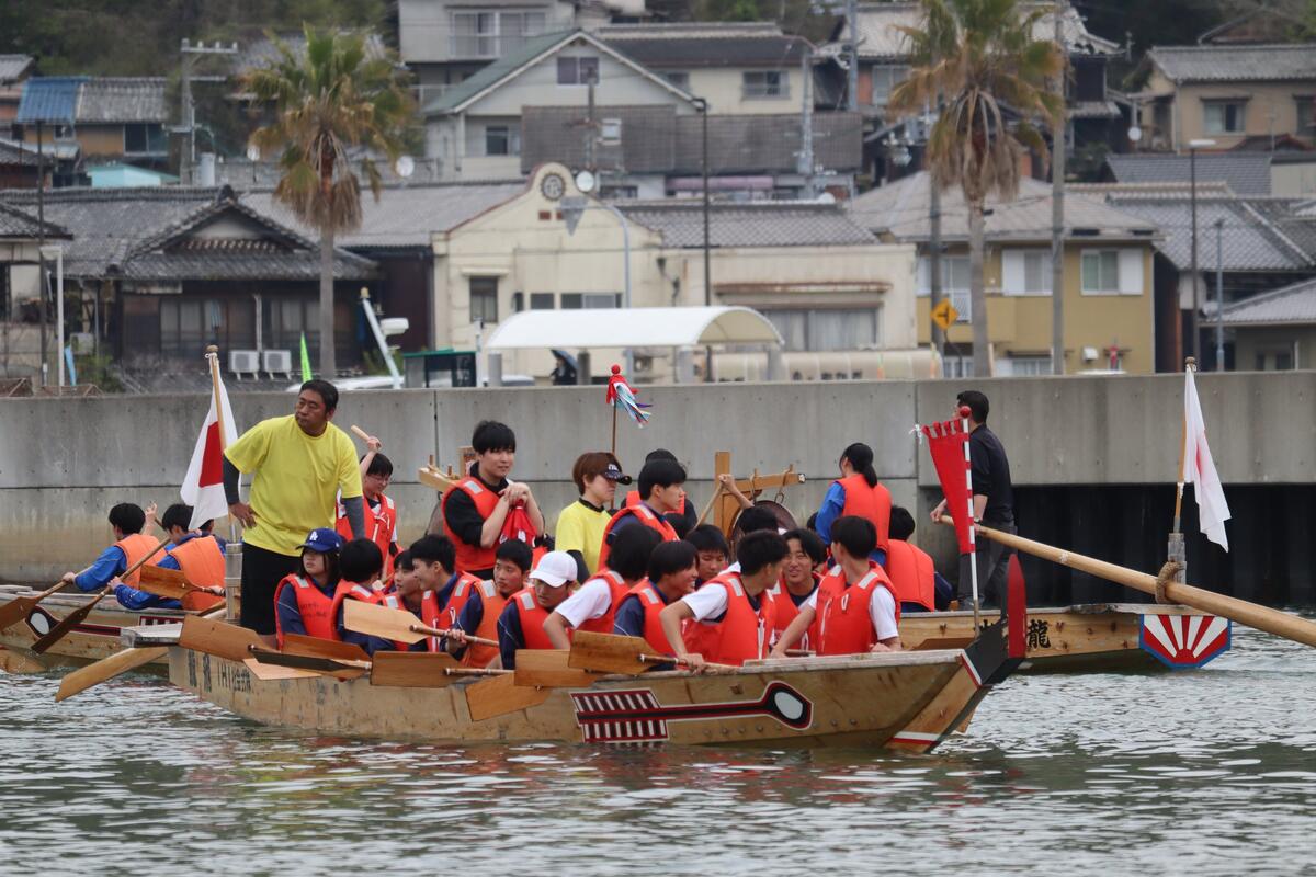 晴天に恵まれた4月17日(金)、新学年になり新たなクラスの親睦と団結力を高めるねらいを込めて、相生市が誇る伝統行事「ペーロン競漕」体験を実施しました。
