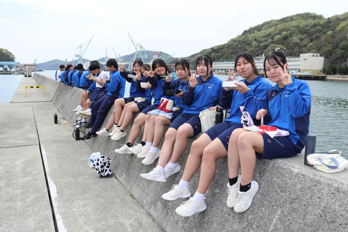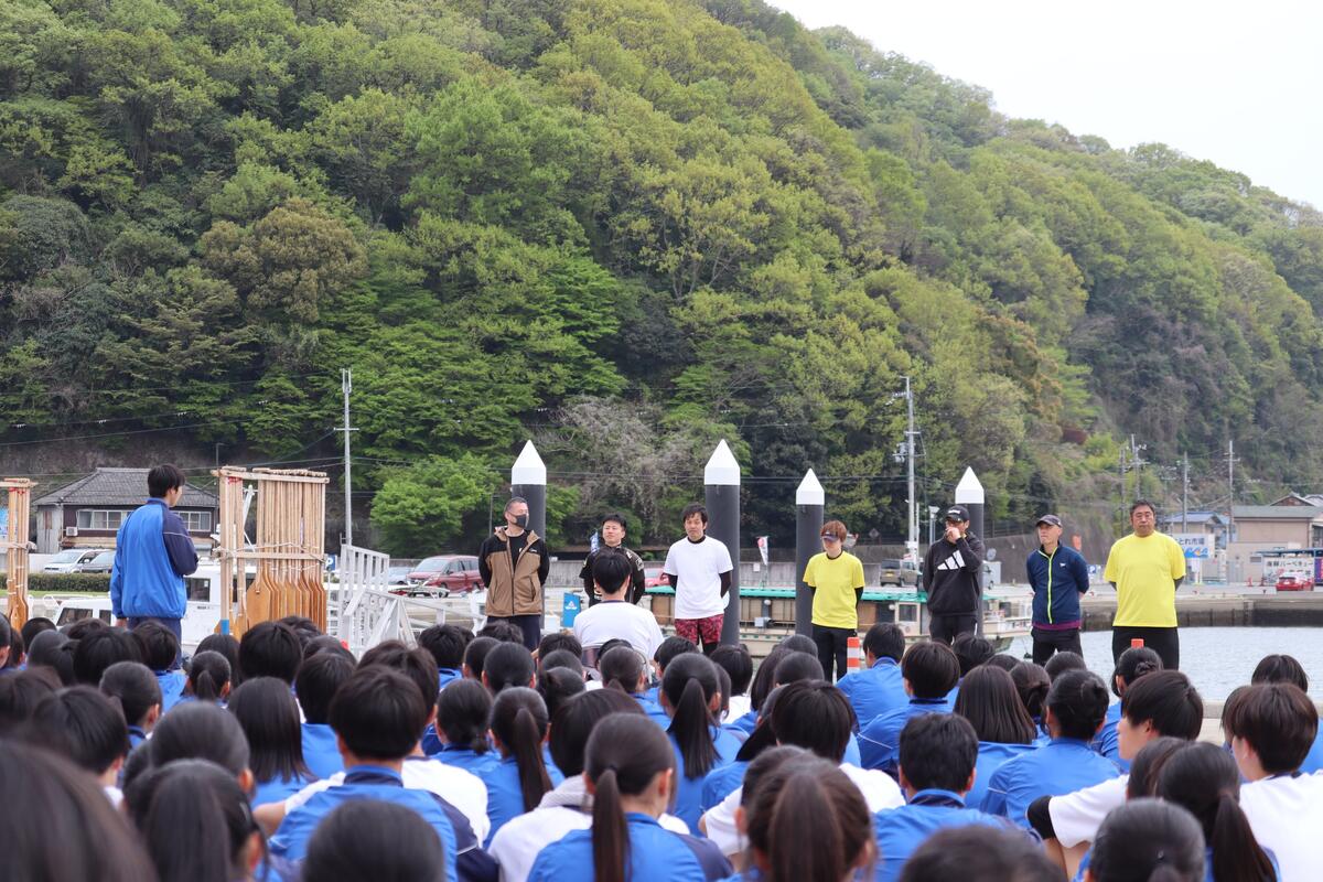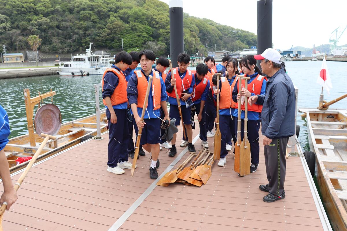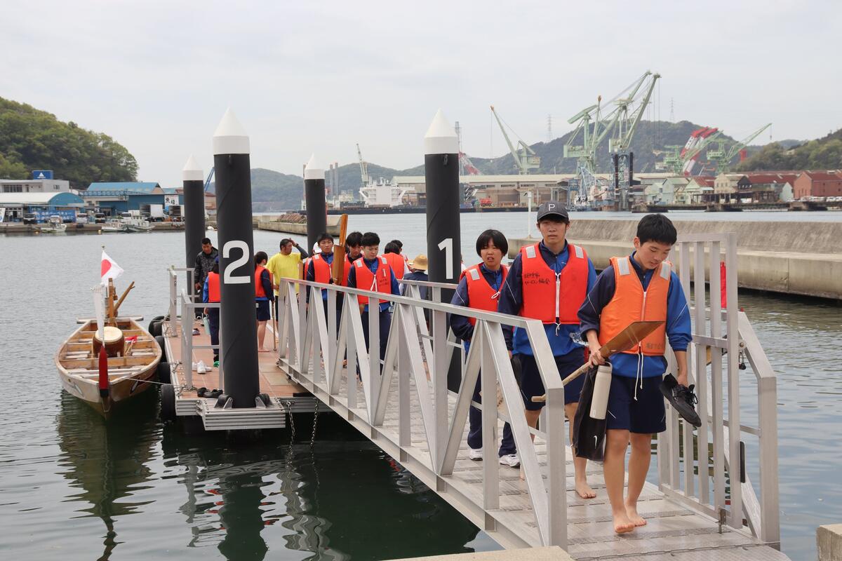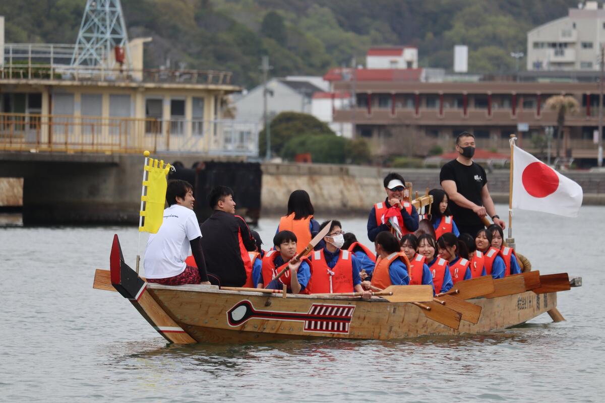 晴天に恵まれた4月17日(金)、新学年になり新たなクラスの親睦と団結力を高めるねらいを込めて、相生市が誇る伝統行事「ペーロン競漕」体験を実施しました。