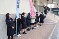 | 挨拶運動を行う1年4組の生徒 | |
