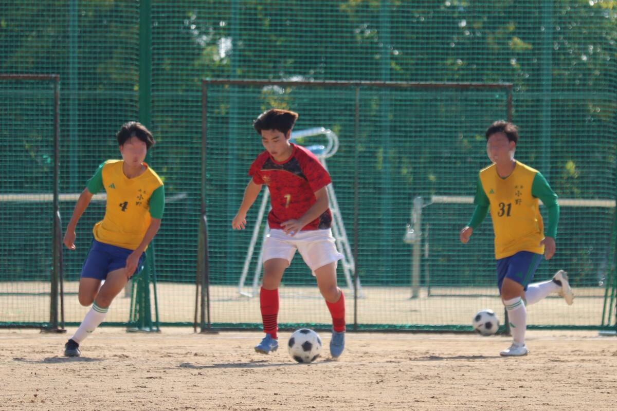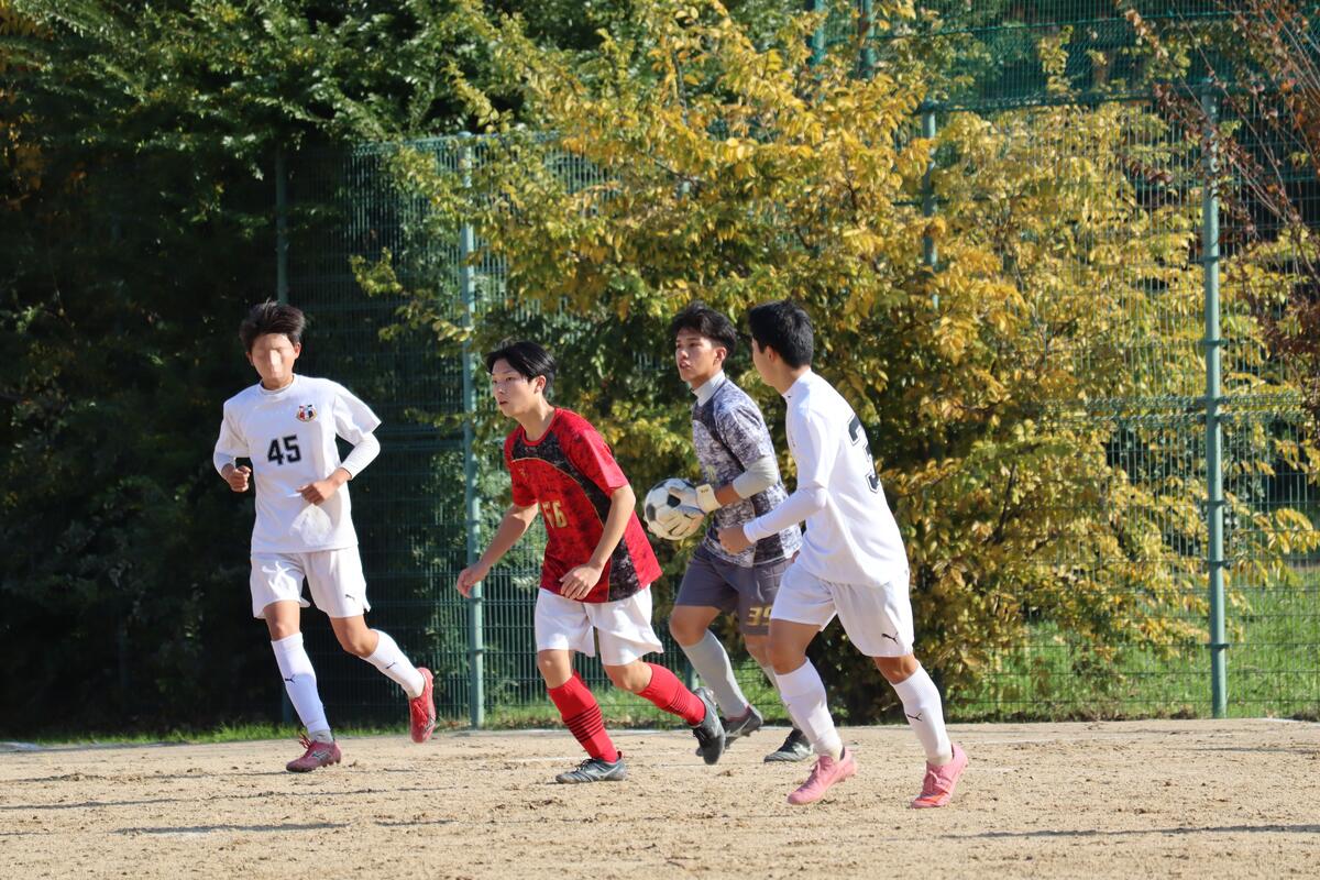 いよいよ高校サッカー選手権が始まりました。今まで練習してきた成果を発揮する良い試合になりました。アップから全員がいつも以上に声を出して、良い雰囲気を作ることができました。試合では、良いパフォーマンスを全員が出してチャンスを作ることができていたのでよかったと思いました。得点をすることができて、良い流れを作ることができていて、前半終了間際にもフリーキックから得点をすることができて、良い流れのまま前半が終わりました。後半は得点する場面がなかったけどチャンスをたくさん作ることができていて良かったです。しかし、しっかりと決めきれなかったり、後半終了間際にPKで失点してしまう場面があったので、次の試合までに調整をしたいです。対戦していただいた加古川西高校のみなさんありがとうございました。