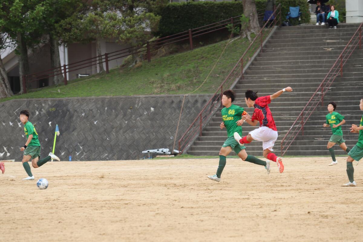 本日は春休み中、最後のゲームとなりました。昨日の雨の影響でピッチのコンディションが悪く、ボールが水溜りで止まったり、すべってしまうことがあったけれど点を決める場面で決め切ることができたり、球際の強さで劣ることもなく良いゲームができたと思います。昨日のリーグ戦で分かった反省点を次のリーグ戦や総体までに改善できるよう頑張っていこうと思います。グラウンド準備も大変な中、対戦していただいた蒼開高校のみなさん、本日はありがとうございました。