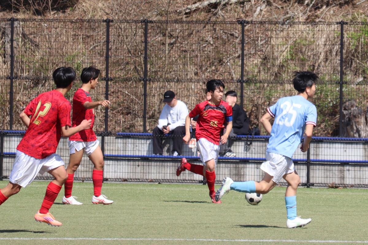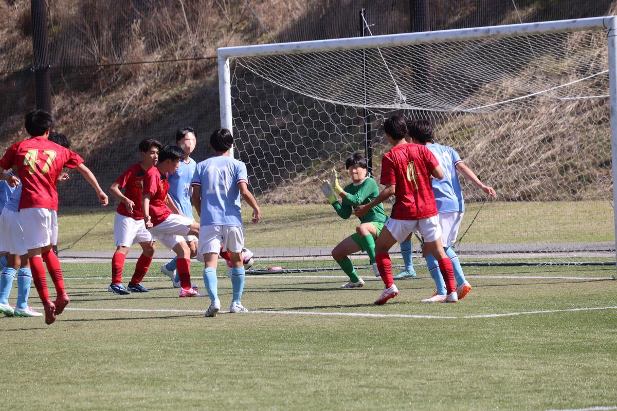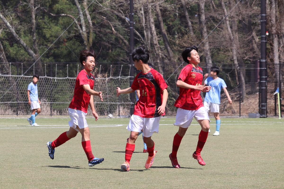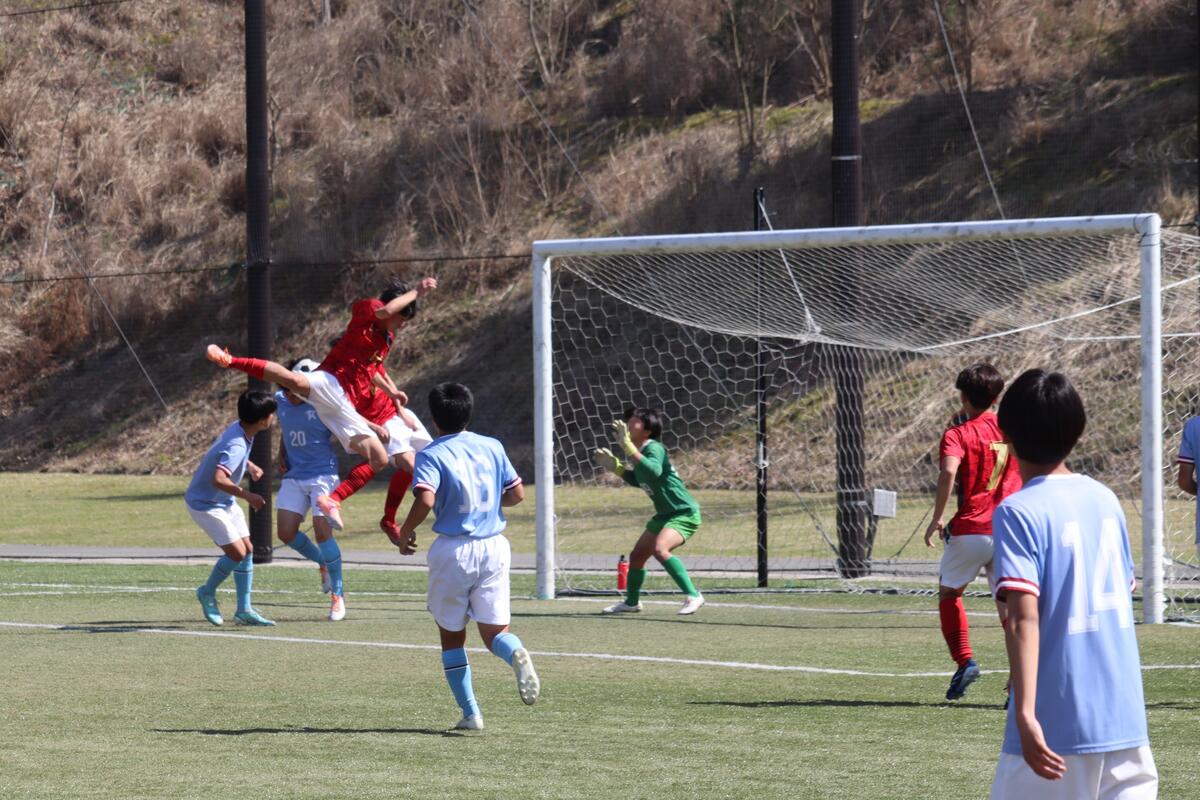本日は春休み中、最後のゲームとなりました。昨日の雨の影響でピッチのコンディションが悪く、ボールが水溜りで止まったり、すべってしまうことがあったけれど点を決める場面で決め切ることができたり、球際の強さで劣ることもなく良いゲームができたと思います。昨日のリーグ戦で分かった反省点を次のリーグ戦や総体までに改善できるよう頑張っていこうと思います。グラウンド準備も大変な中、対戦していただいた蒼開高校のみなさん、本日はありがとうございました。