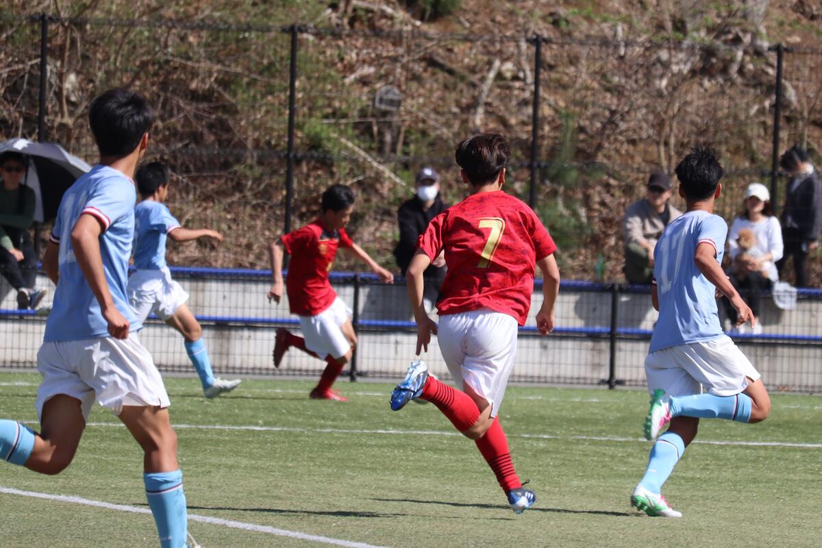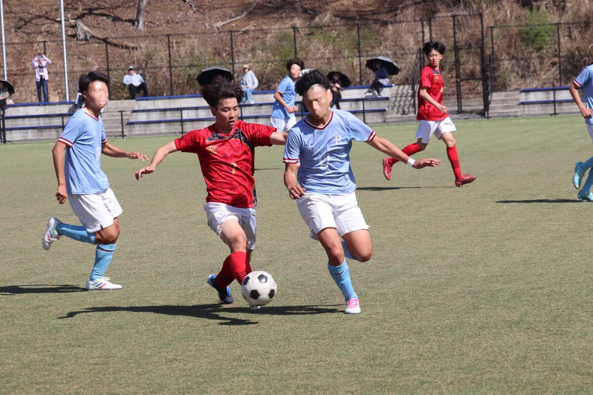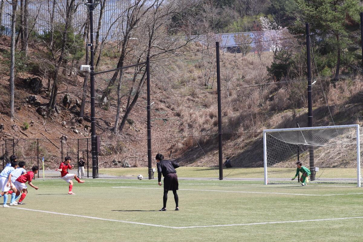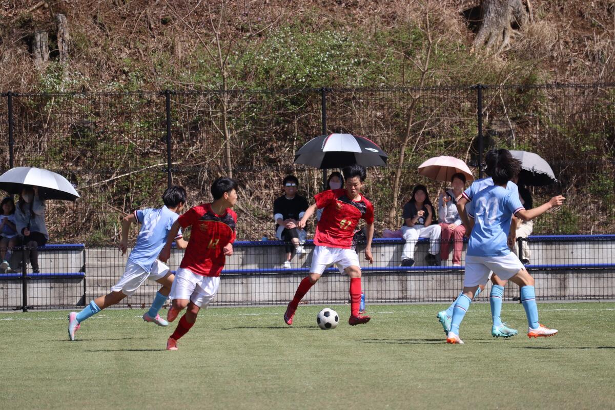 本日は春休み中、最後のゲームとなりました。昨日の雨の影響でピッチのコンディションが悪く、ボールが水溜りで止まったり、すべってしまうことがあったけれど点を決める場面で決め切ることができたり、球際の強さで劣ることもなく良いゲームができたと思います。昨日のリーグ戦で分かった反省点を次のリーグ戦や総体までに改善できるよう頑張っていこうと思います。グラウンド準備も大変な中、対戦していただいた蒼開高校のみなさん、本日はありがとうございました。