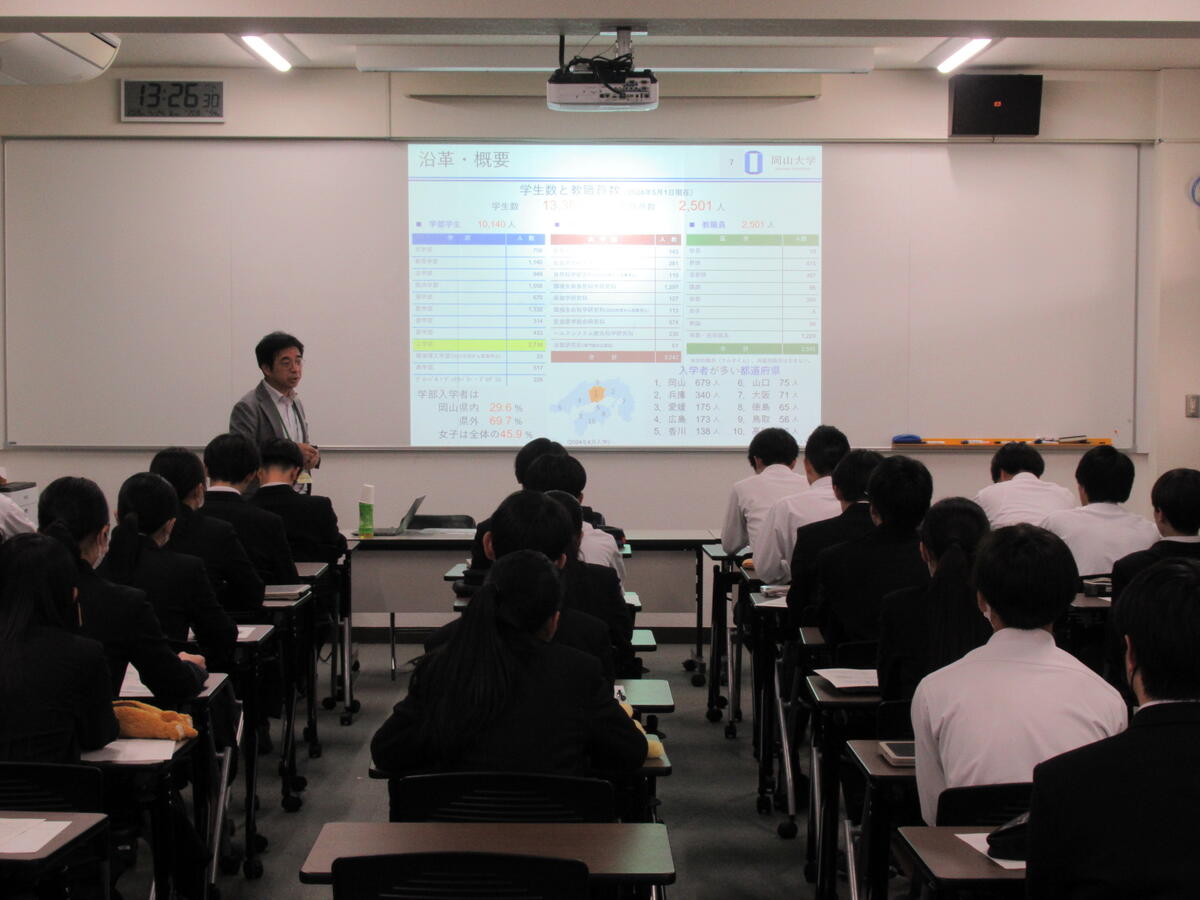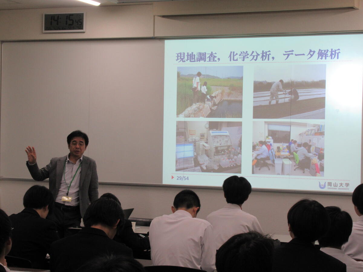 4月24日(金)、岡山大学工学部 環境・社会基盤系の前田守弘 先生をお招きし、自然科学類型2年生を対象とした特別講義を実施しました。