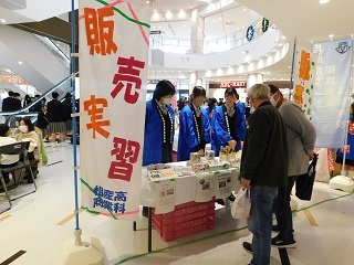 暖かい日差しの差し込む好天のなか、商業科の生徒が販売実習を行いました。義士祭の放送ブースで行った販売実習のPRや、周りの出店者に負けないような高校生らしい元気な声かけ、丁寧な商品説明の成果もあり、多くのお客様に商品を購入していただきました。結果、1日の実習を通して、取扱商品の予定数量をすべて完売することができました。商品をご購入いただいたお客様、販売ブースにお立ち寄りいただいたお客様、本当にありがとうございました。生徒はもちろん我々教員にとっても実りのある充実した1日になりました。