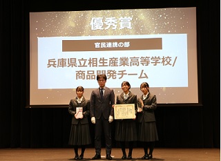 兵庫大学において第10回現代ビジネスプラン・コンペ2024が開催されました。本校、商業科商品開発チームは、A類:アイデア部門(構想提案型)の最終選考5組に選出され、兵庫大学にてプレゼンを行ってきました。結果は、最優秀賞でした。審査員の講評として、アイデアを3Dプリンタで形にし、それを実験して性能検証まで行いビジネスプランとして提案していることを大変褒めていただきました。生徒達も自分たちの取り組みを評価していただき大変喜んでいました。