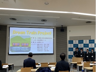 2月3日に、新長田ピプレホールにおいて、兵庫県の商業高校生による研究発表大会が実施されました。12チームの出場があり、本校はJR赤穂線の利用促進による地域活性化プランとして、Dream Train Projectの研究発表をおこないました。