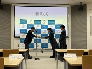 本日、中国経済産業局長様が来校され、局長表彰をしていただきました。