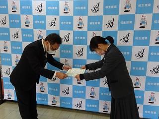 12月16日に税の作文表彰がありました。相生税務署長 向井正様より、表彰していただきました。