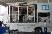 最後に防災センター北側の陸上競技場のバックスタンド下にある備蓄物質と資機材倉庫を見学しました。