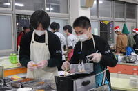12月15日・16日の二日間にわたり、定時制課程の文化祭「ていじ祭」を開催しました。ていじ祭初日は、翌日の模擬店準備の後、生徒集会室でのステージ発表。生徒会のメンバーが工夫を凝らして動画や班別対抗クイズ大会、有志による漫才を行い、最後はビンゴ大会で盛り上がりました。