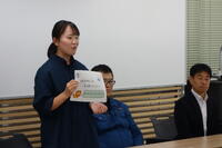 結団式では、教頭先生と生徒指導の先生から旅行に関する注意がありました。生徒代表からは、時間とルールを守って有意義な修学旅行にするという宣誓があり、養護の先生からは、健康上の注意がありました。3年生4人の沖縄3泊4日の修学旅行です。一人ひとりが他の人を思いやり、思い出に残る楽しい修学旅行にしてください。